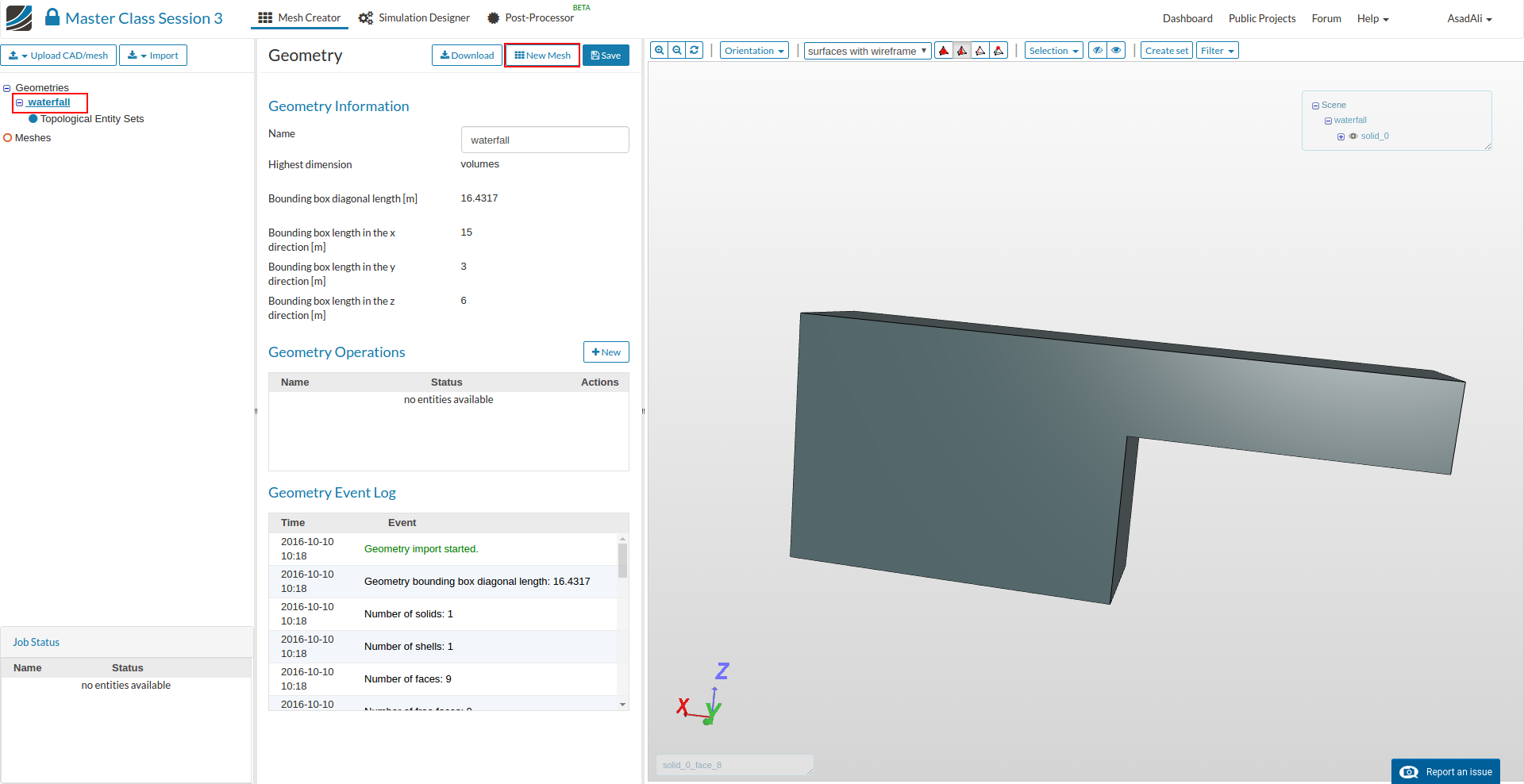 - Make sure that the geometry item is selected in the Project Tree and press New Mesh to create a new mesh setup for the geometry.
