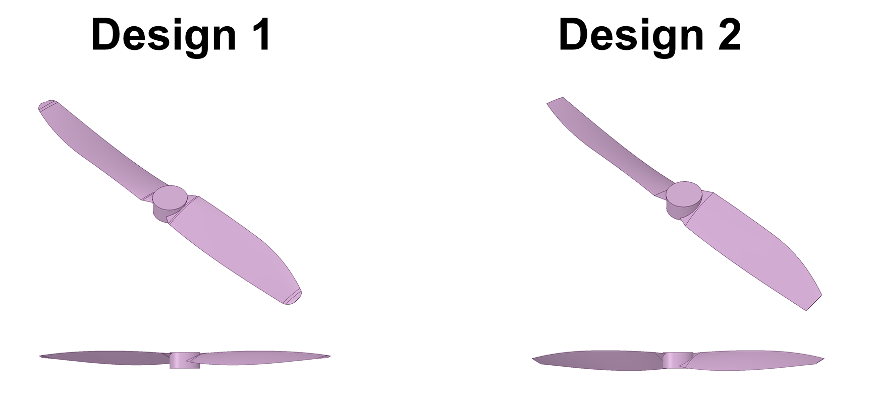 The aim of the first part of this homework assignment is to investigate and compare the aerodynamic characteristics of two different quadcopter propeller designs.