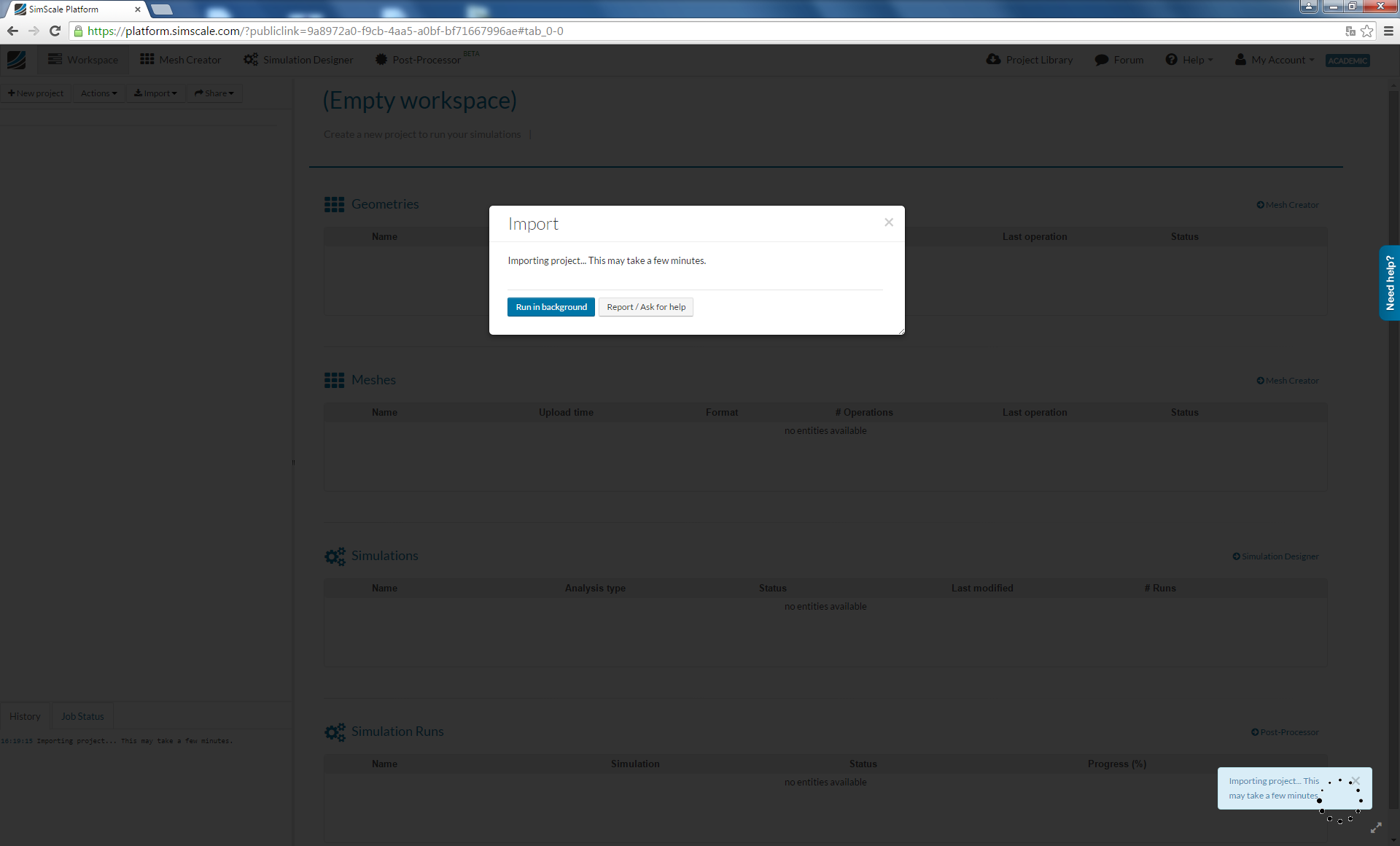 and a project with everything you need will be added to your workspace. Please note that this can take several minutes.