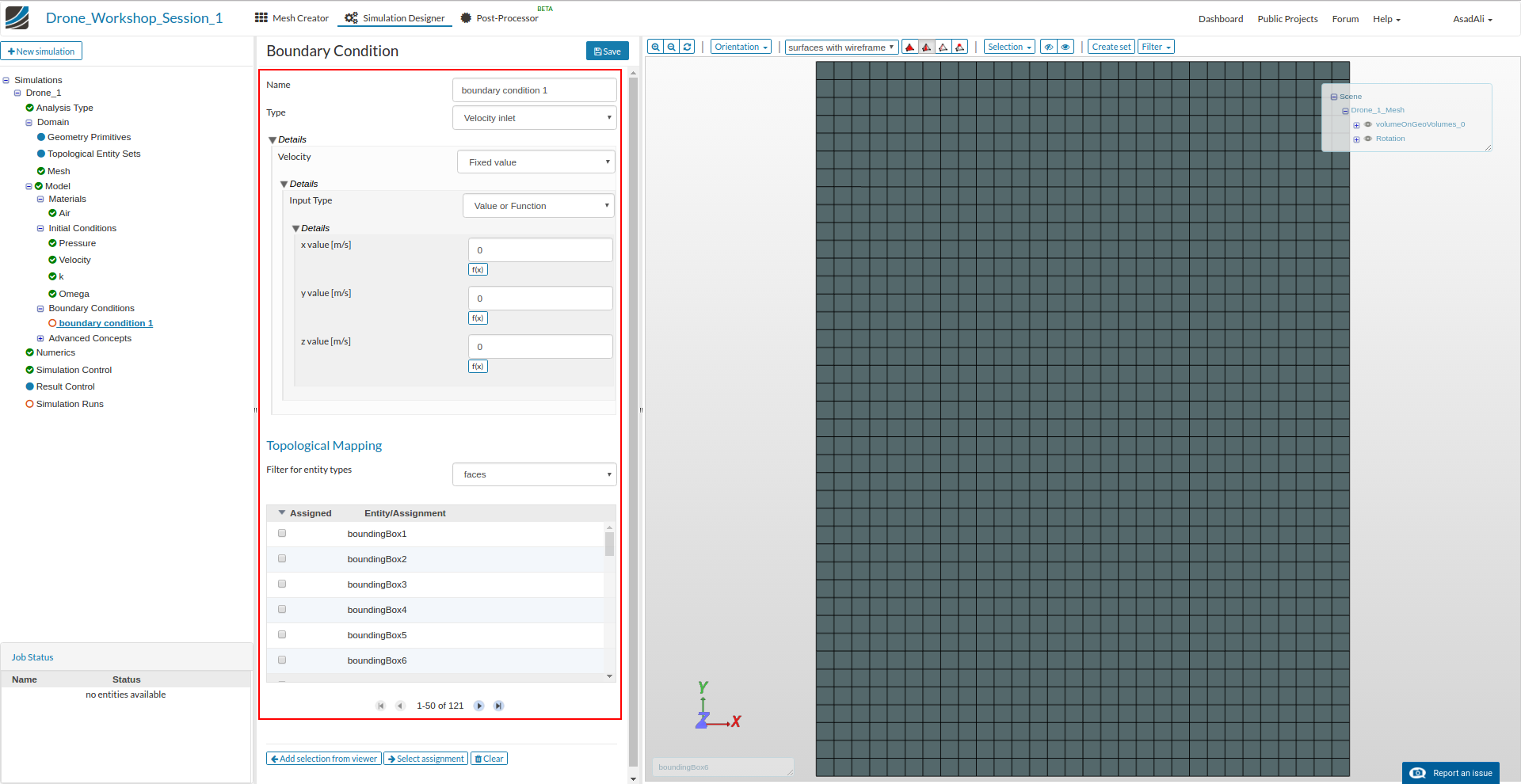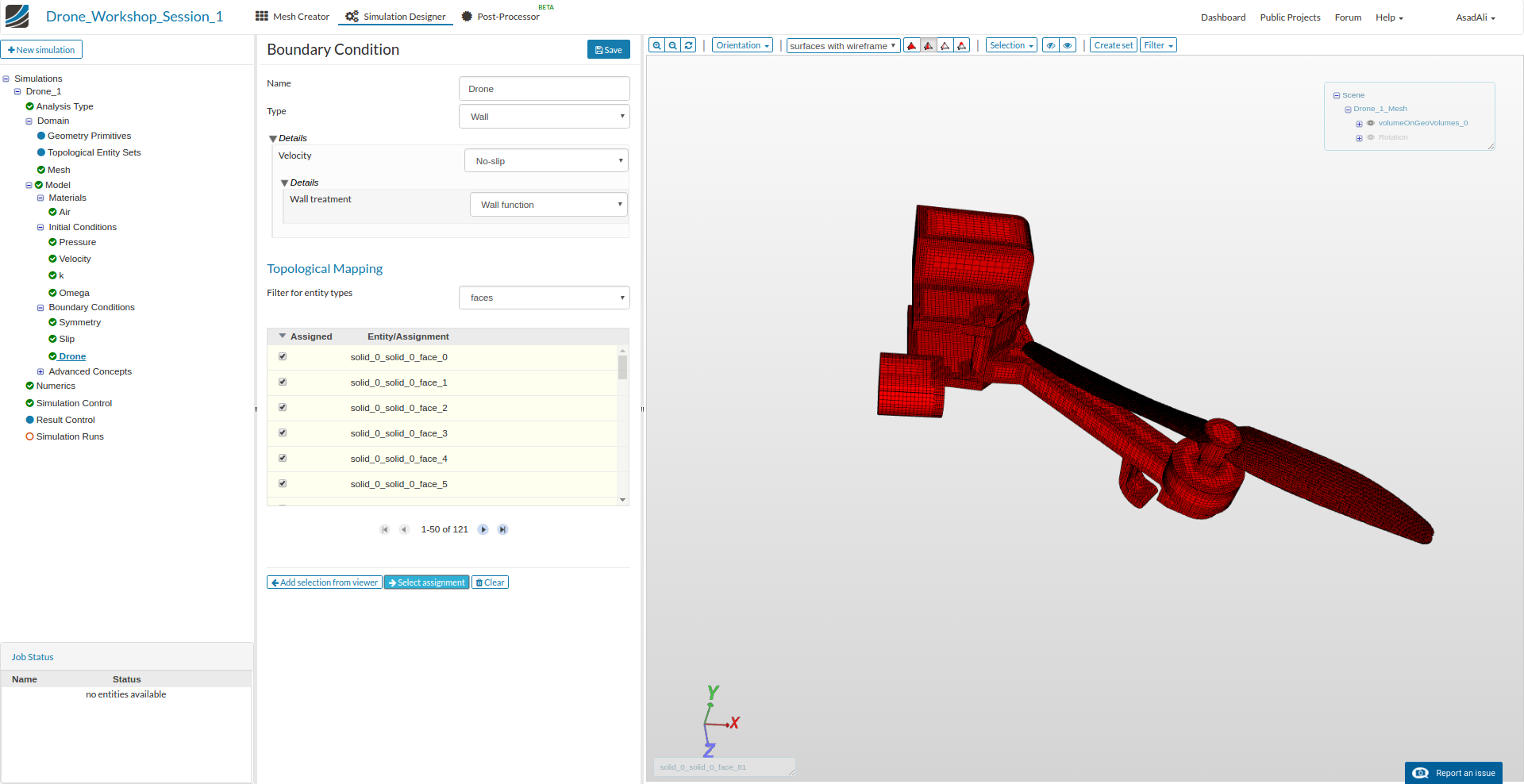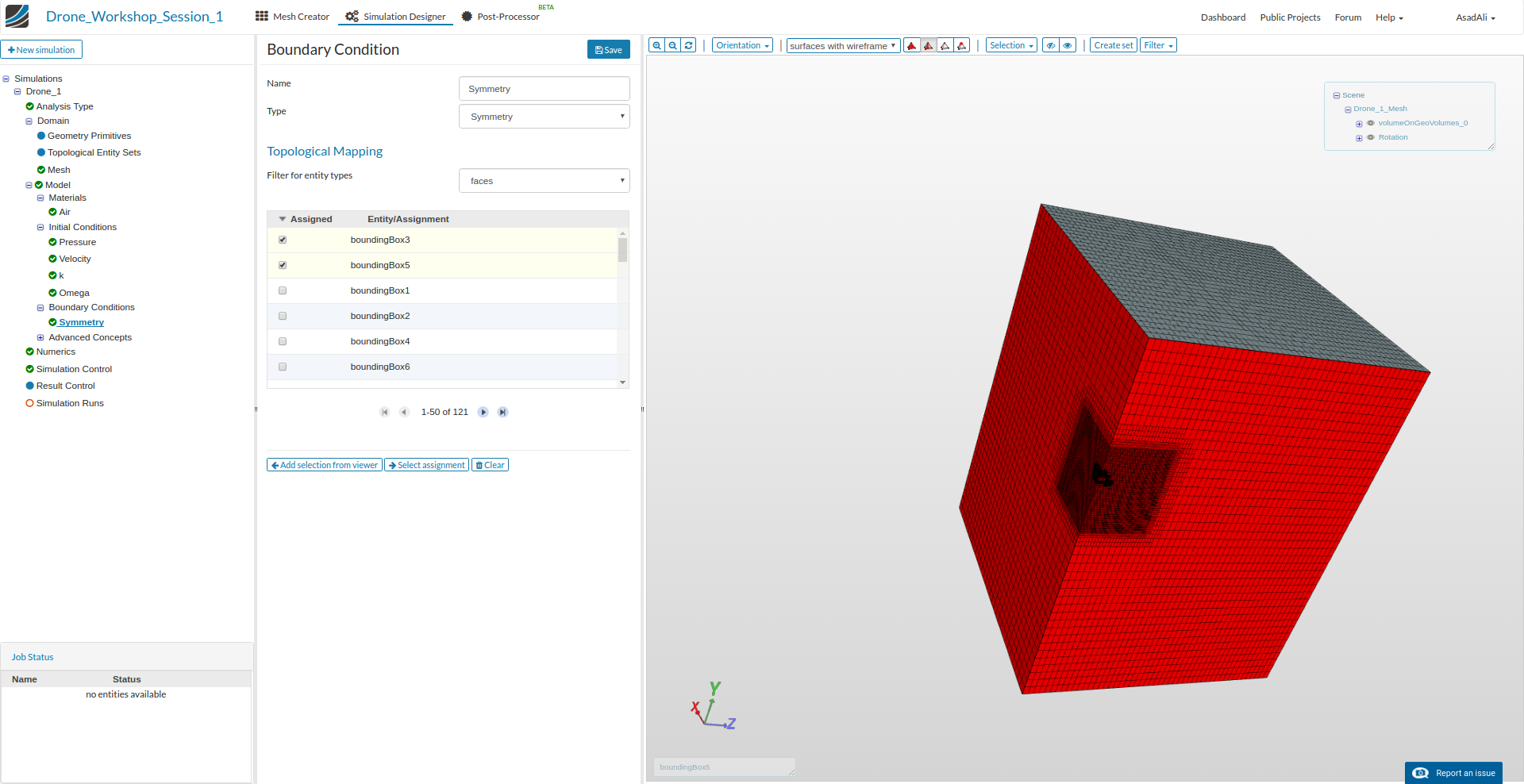 Now you can start to specify the physical behavior of the drone and its interaction with the environment by defining the Boundary Conditions for all faces of the mesh.