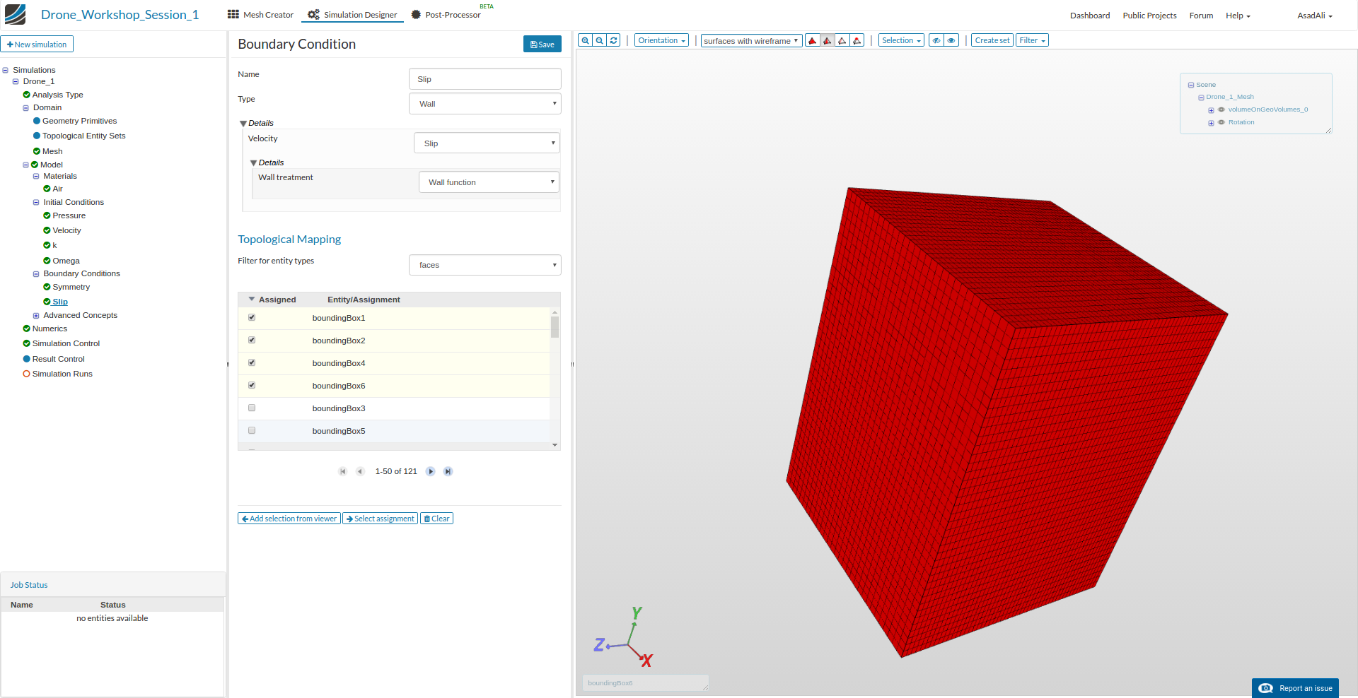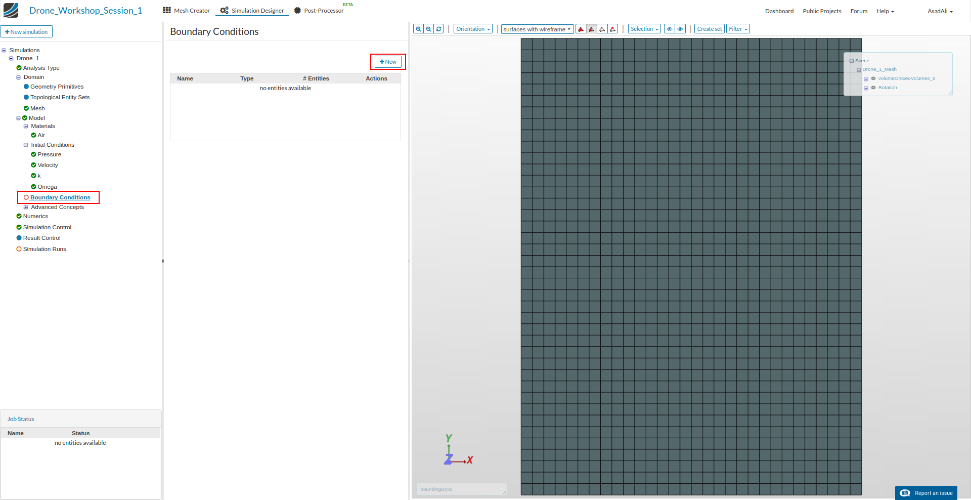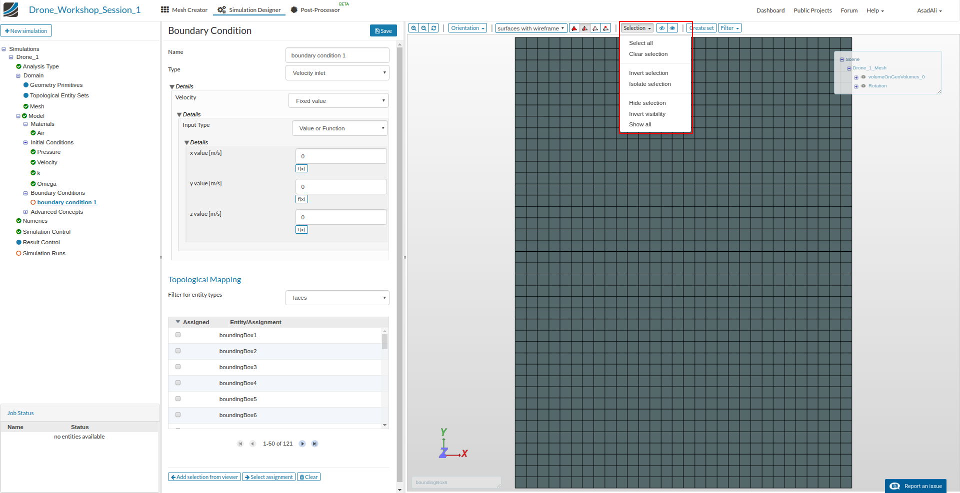 Now you can start to specify the physical behavior of the drone and its interaction with the environment by defining the Boundary Conditions for all faces of the mesh.