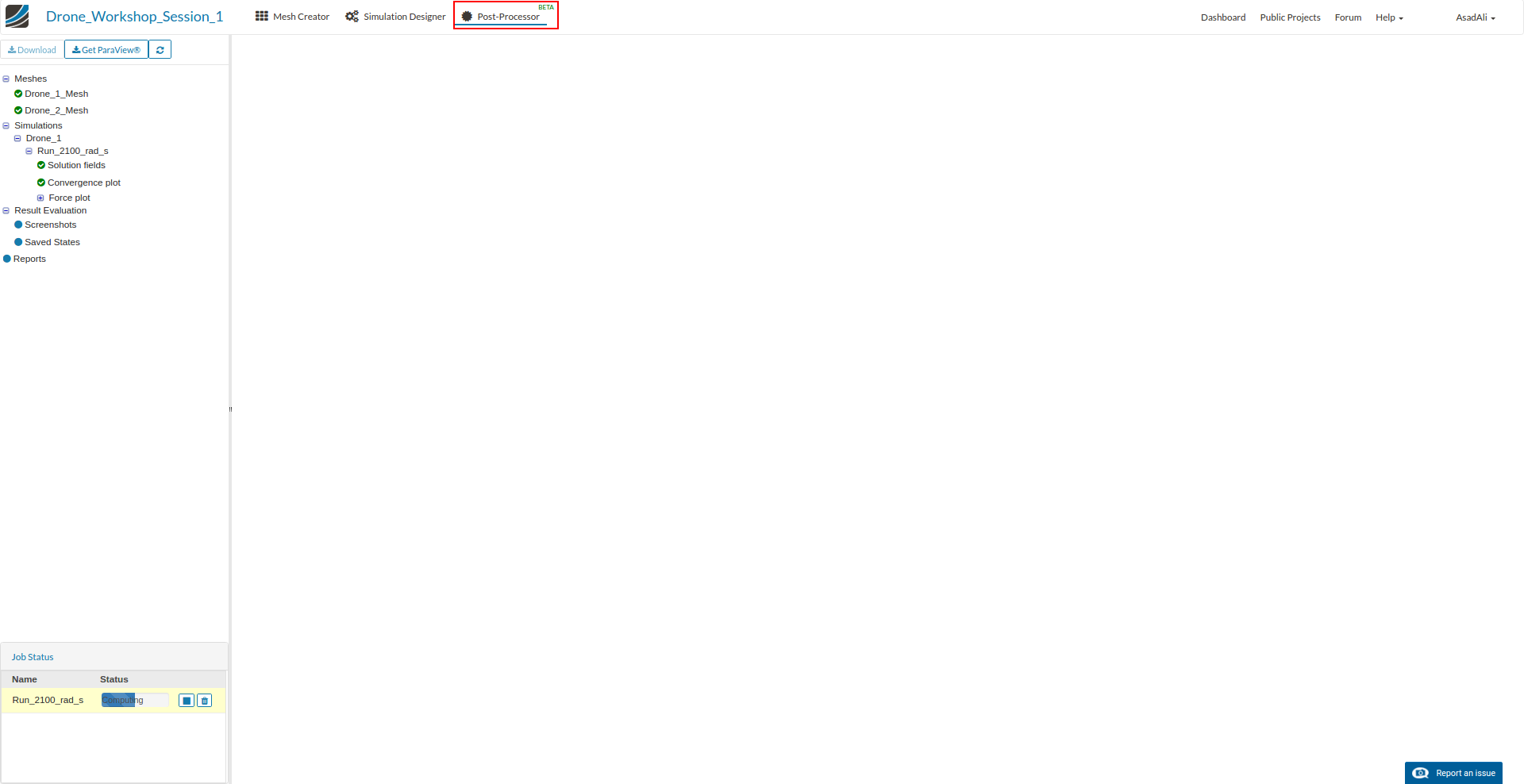 You will be notified by email when the simulation is finished. To check the results of the lift force, click on the Post-Processor button in the main ribbon bar. On the left side is a result tree, where you can find all simulation results.