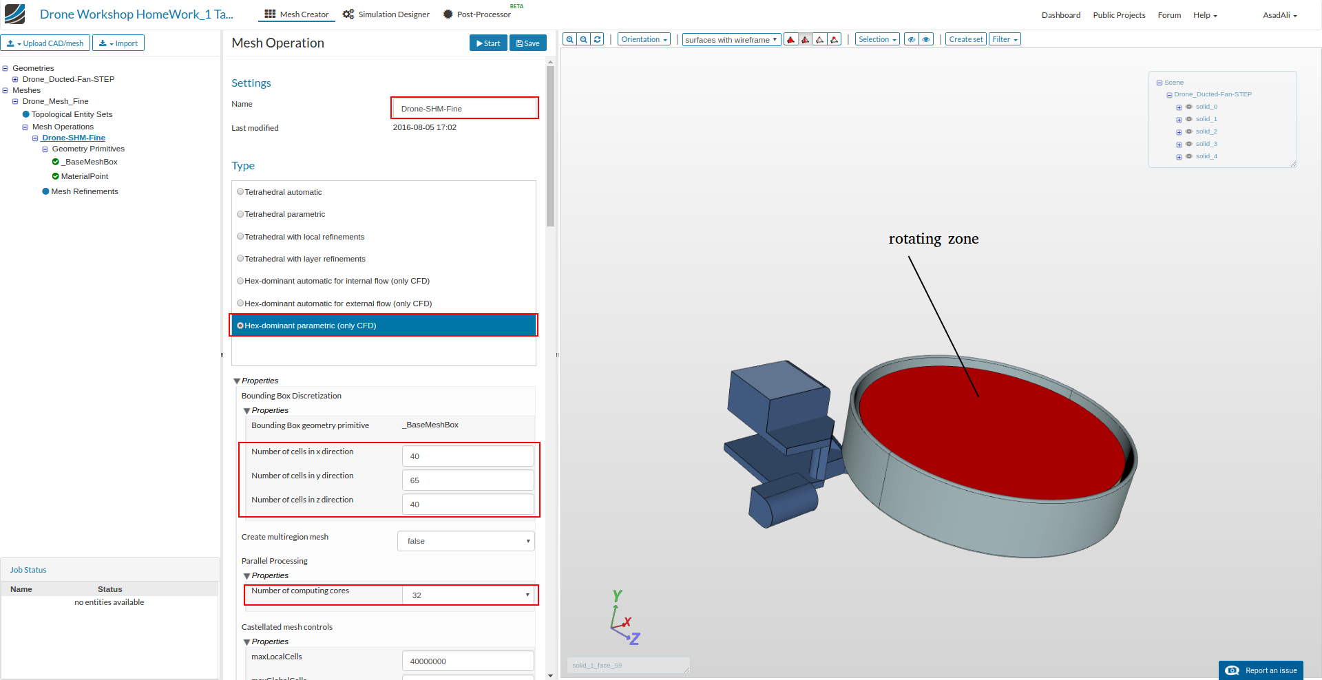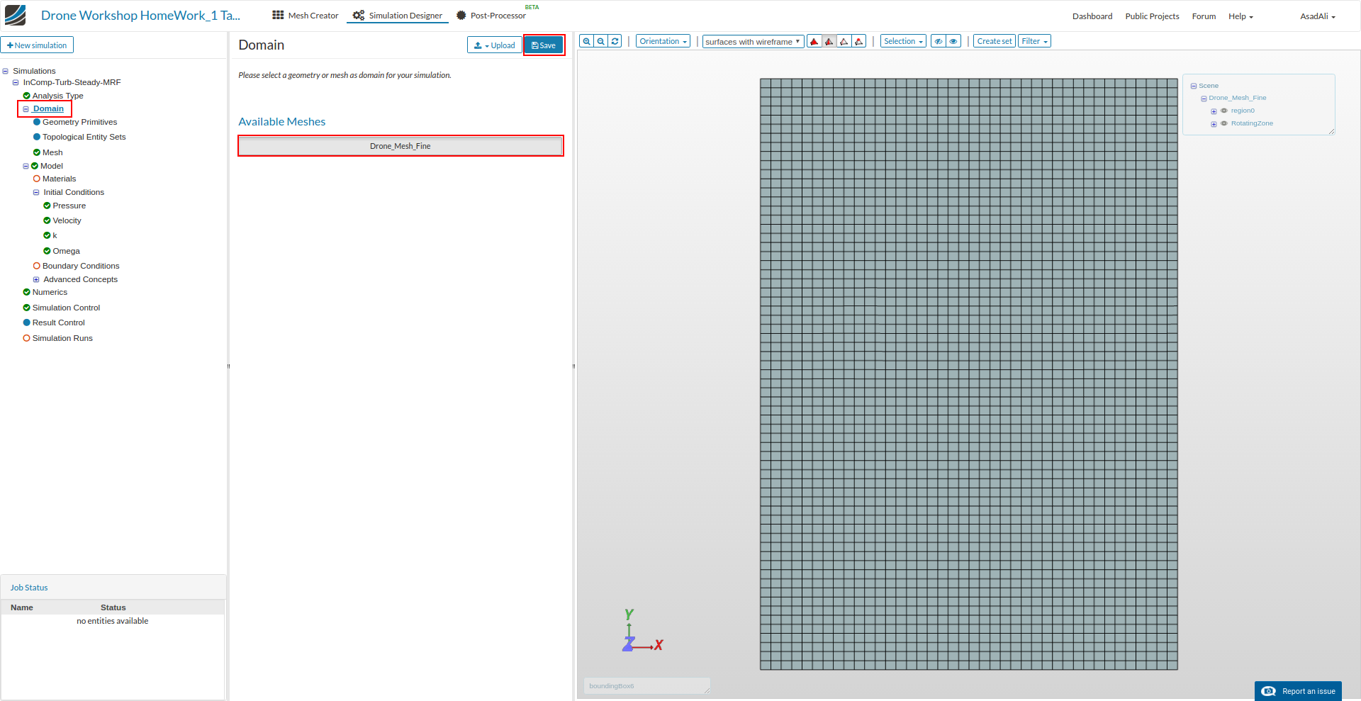 Once done, click save and start the meshing process by clicking on the start button at top. The meshing process will take less than an hour to finish.