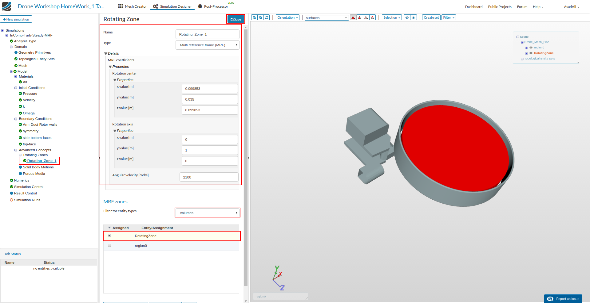 Select and assign the values as shown in the figure below to set the rotating MRF zone. Check RotatingZone under MRF Zone section for entity types volumes and click save