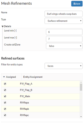I’m currently trying to generate the mesh for my Formula SAE Front Wing (session 4 homework). It’s a three-element wing, and between the elements, the mesh is too coarse and doesn’t mesh the 12mm gaps correctly, as evidenced in the attached images. Which parameters should I modify in the mesh refinement? The current parameter values are also in the attached image.