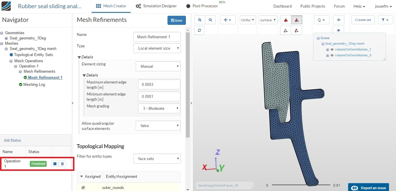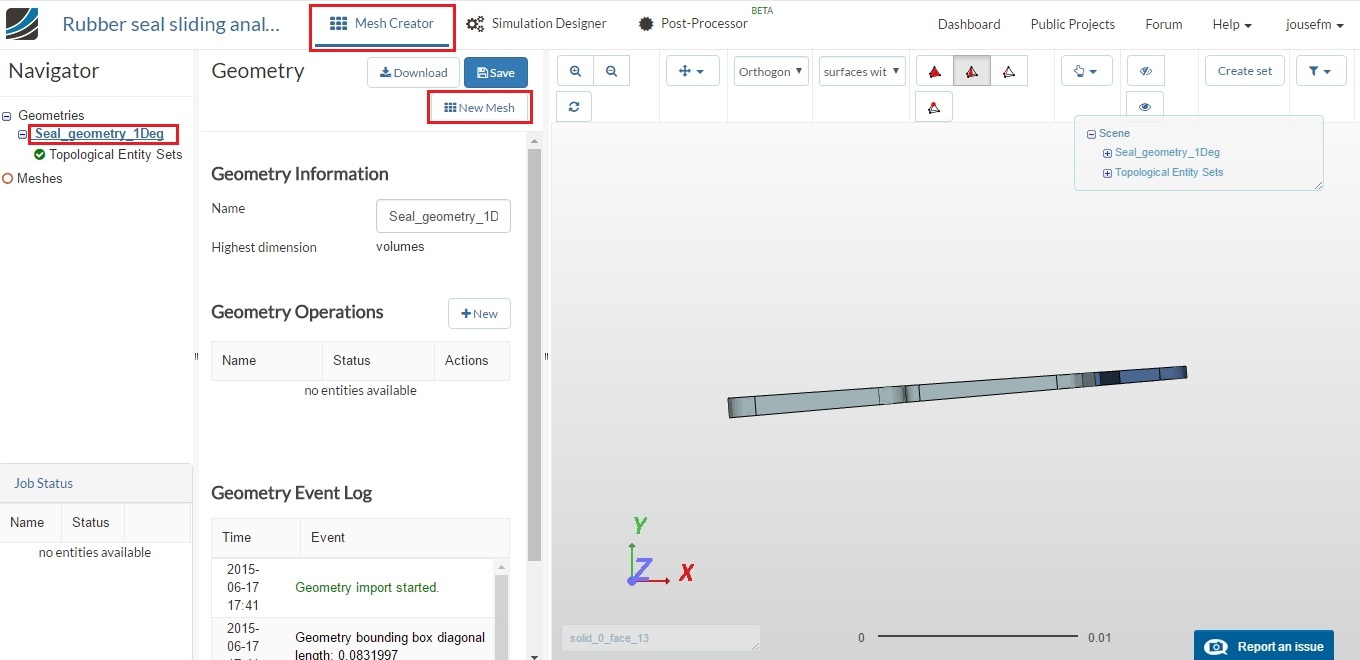 In the Mesh Creator tab, click on the geometry Seal_geometry_1Deg.
