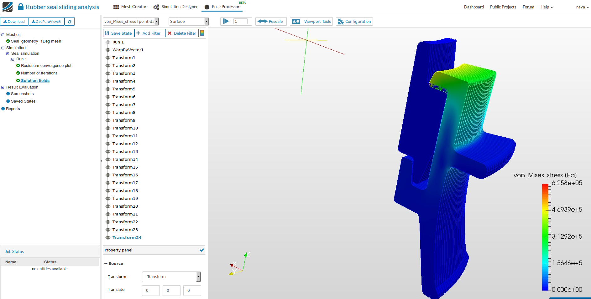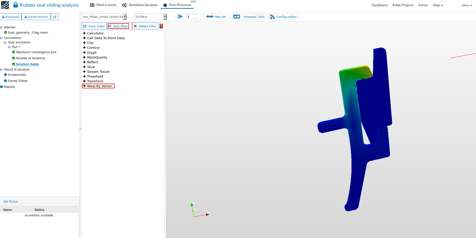 - In order to see the deformed shape of the rubber seal, click on Add Filter and then Warp by Vector.
