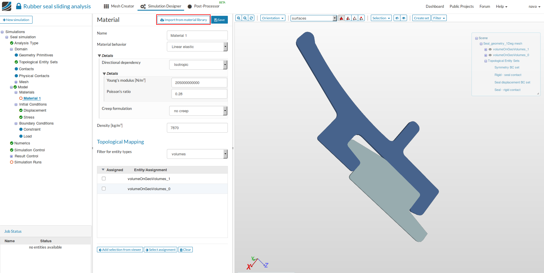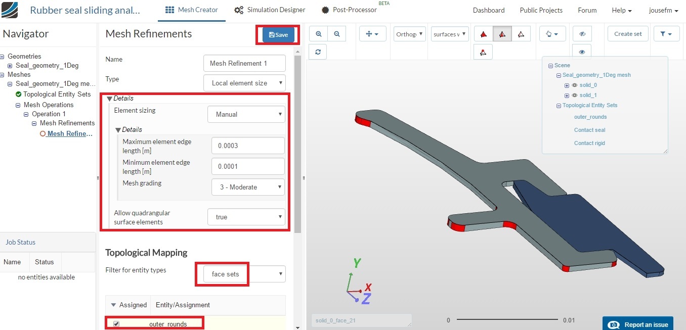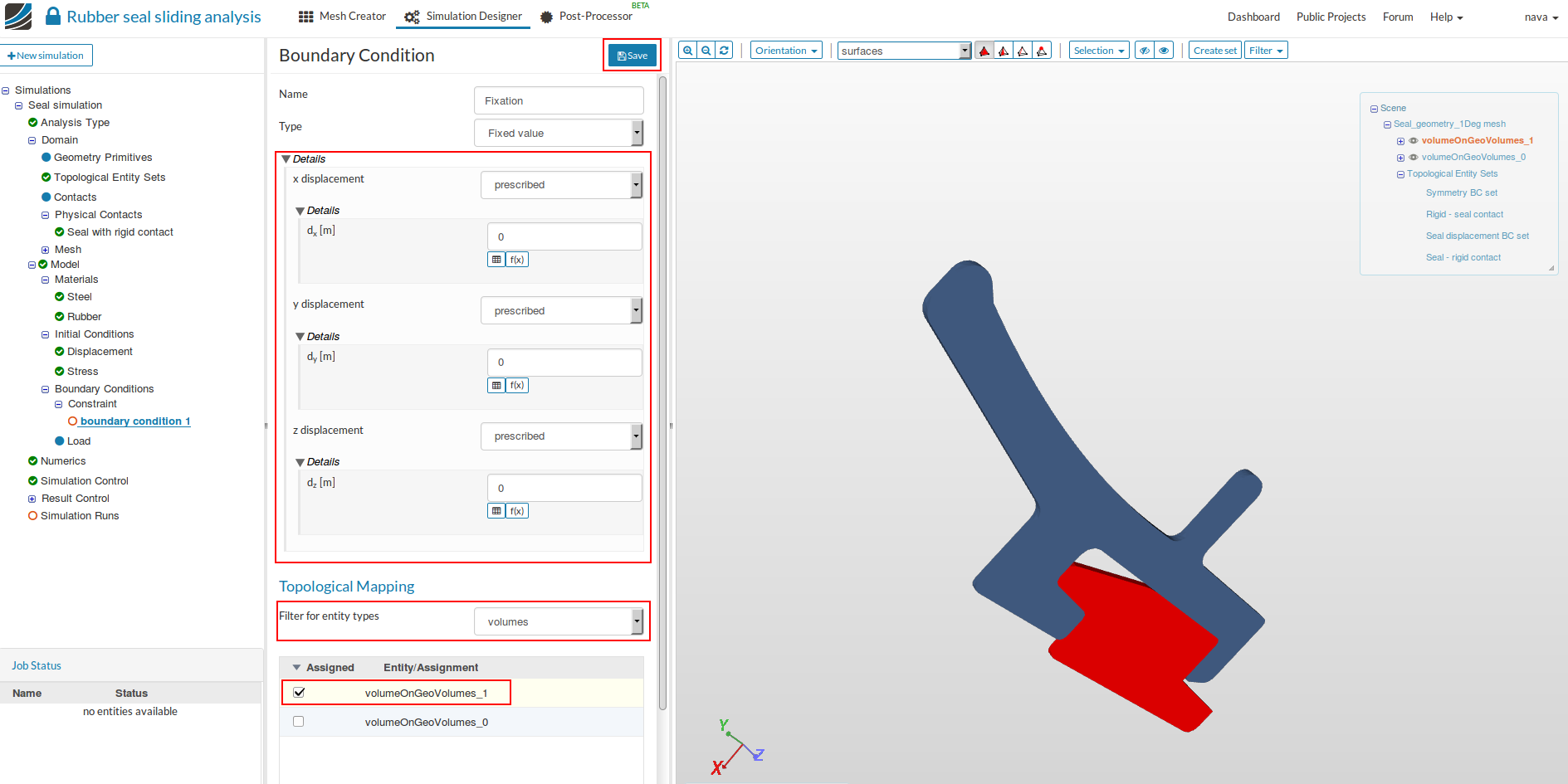 - Under Topological Mapping, change ‘Filter for entity types’ to face sets and select Seal displacement BC set. Then click Save.