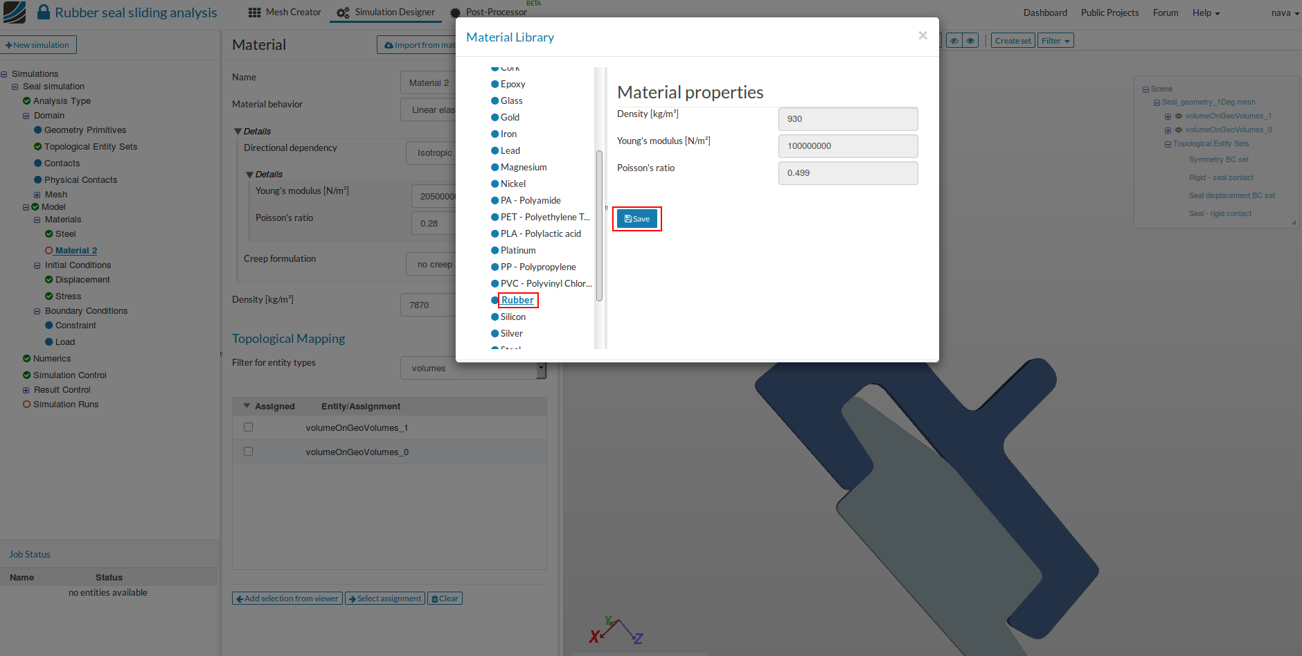 Select volumeOnGeoVolumes0 (seal) to add the volume to which rubber is assigned and then Save.