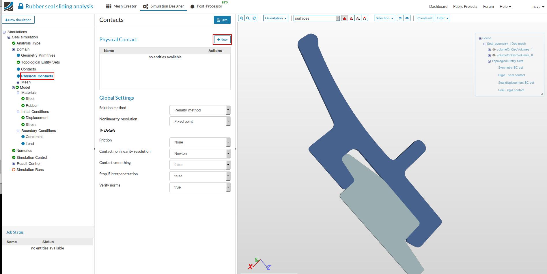 In this section we will define the physical contact between the seal and the rigid body. We are using penalty method for modelling the contact.