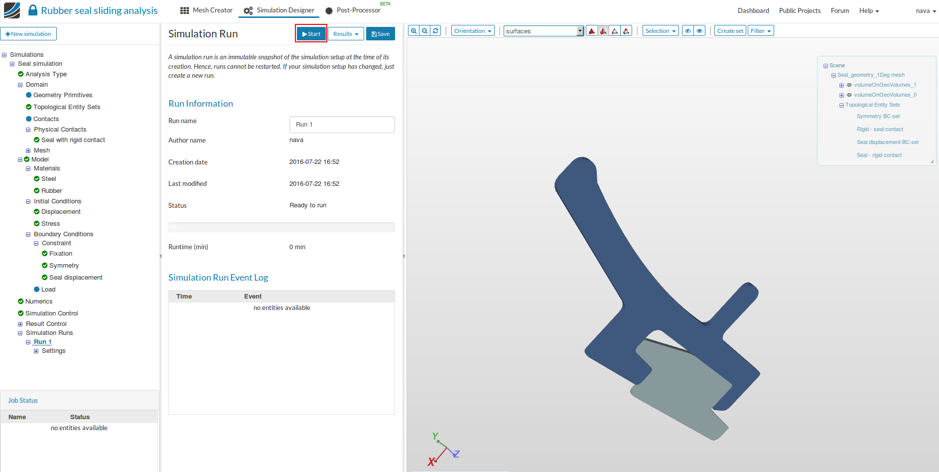 - The new run will be created under Simulation Runs. Click Start to run the simulation.