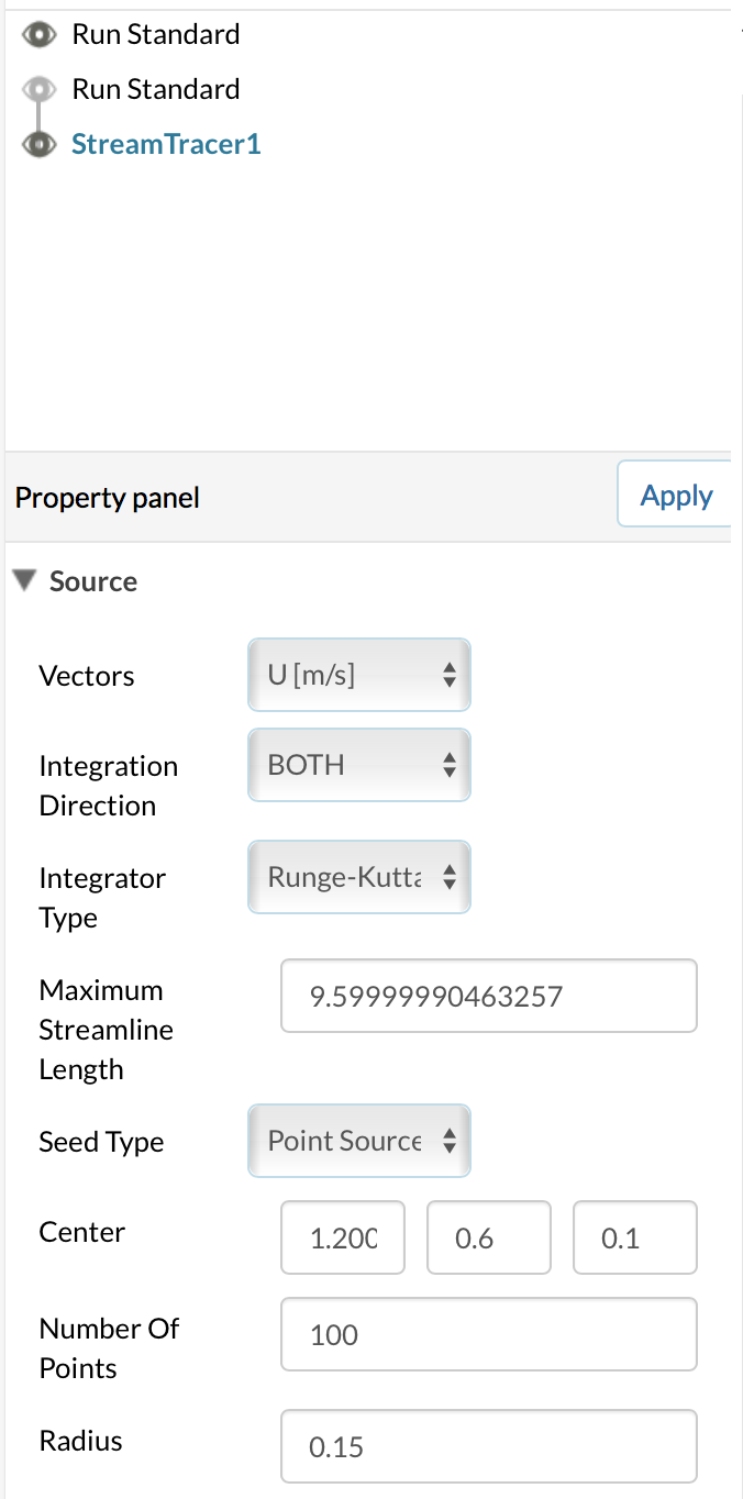 If I tried to put the filter on the other ‘run standard’ solution set then this wouldn’t have worked, so you need one solution set with just surfaces and one with the internal mesh, putting the streamlines on the internal mesh.