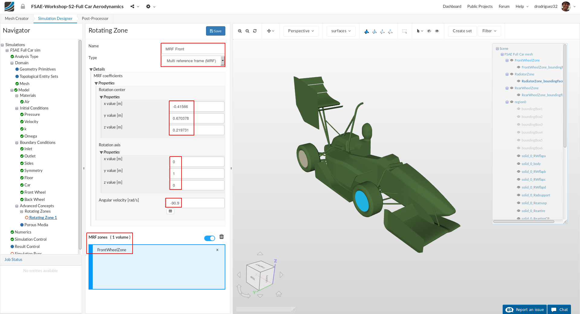 Then select FrontWheelZone. You should see it in the blue highlighted box under MRF zones and highlighted in blue in the viewer.