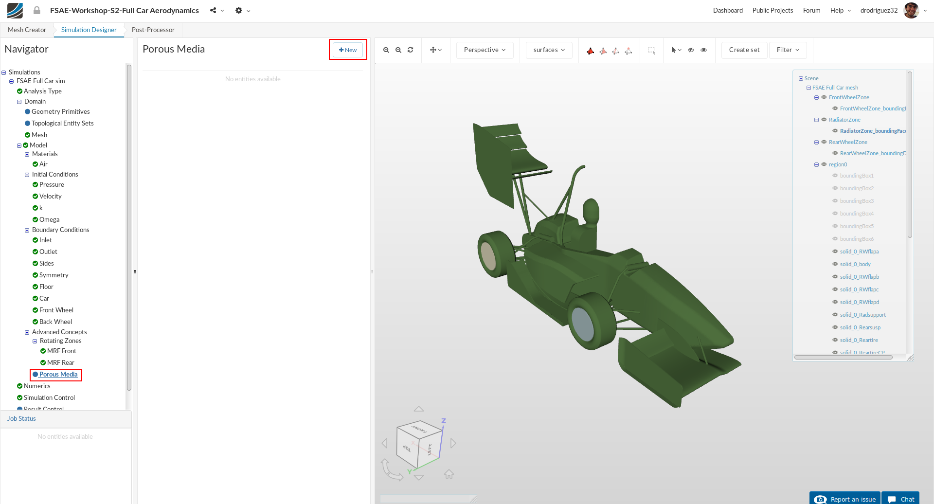 Expand the Advanced Concepts tree item and proceed to Porous Media. Click +New to create a new porous media definition.