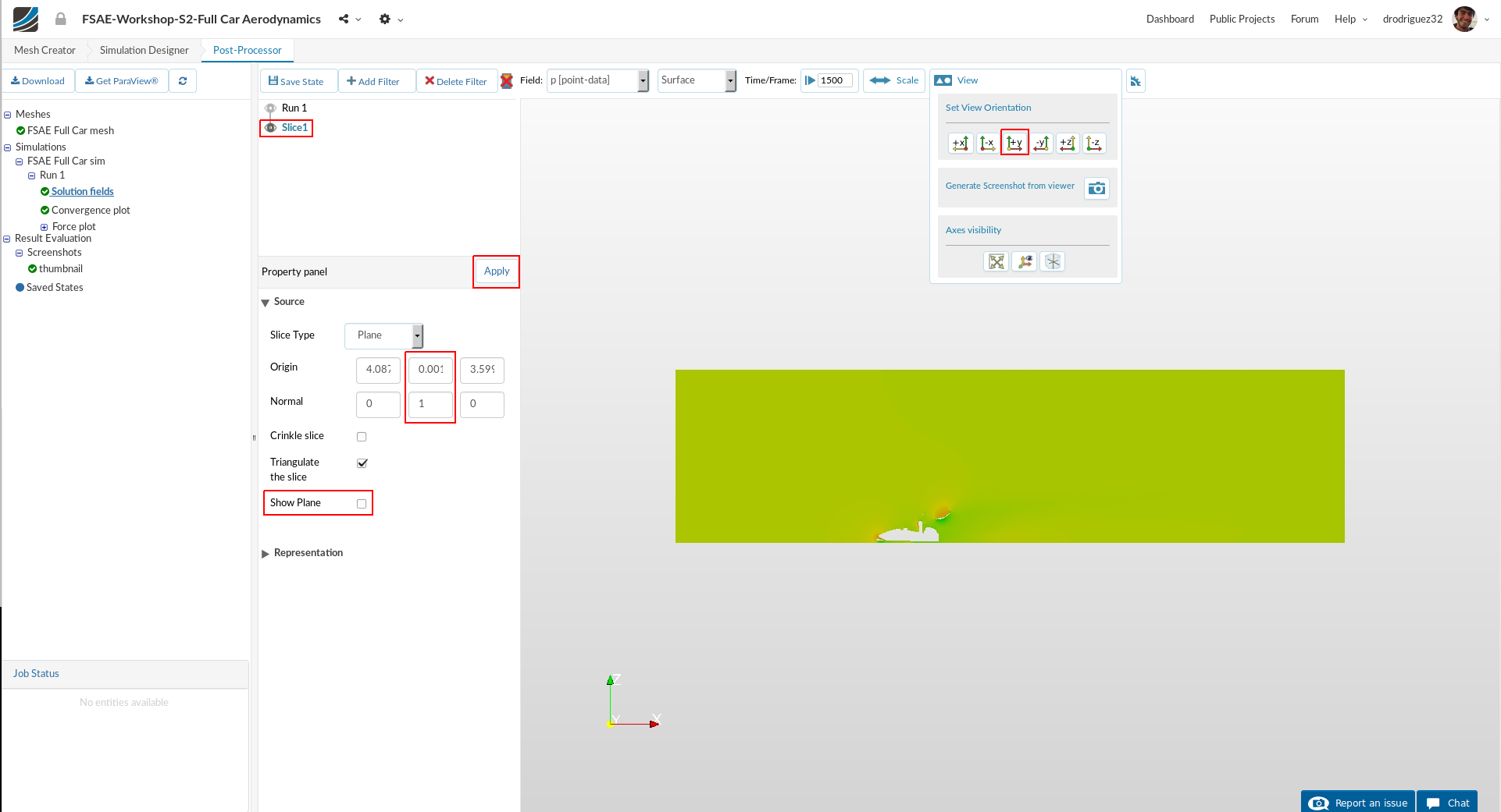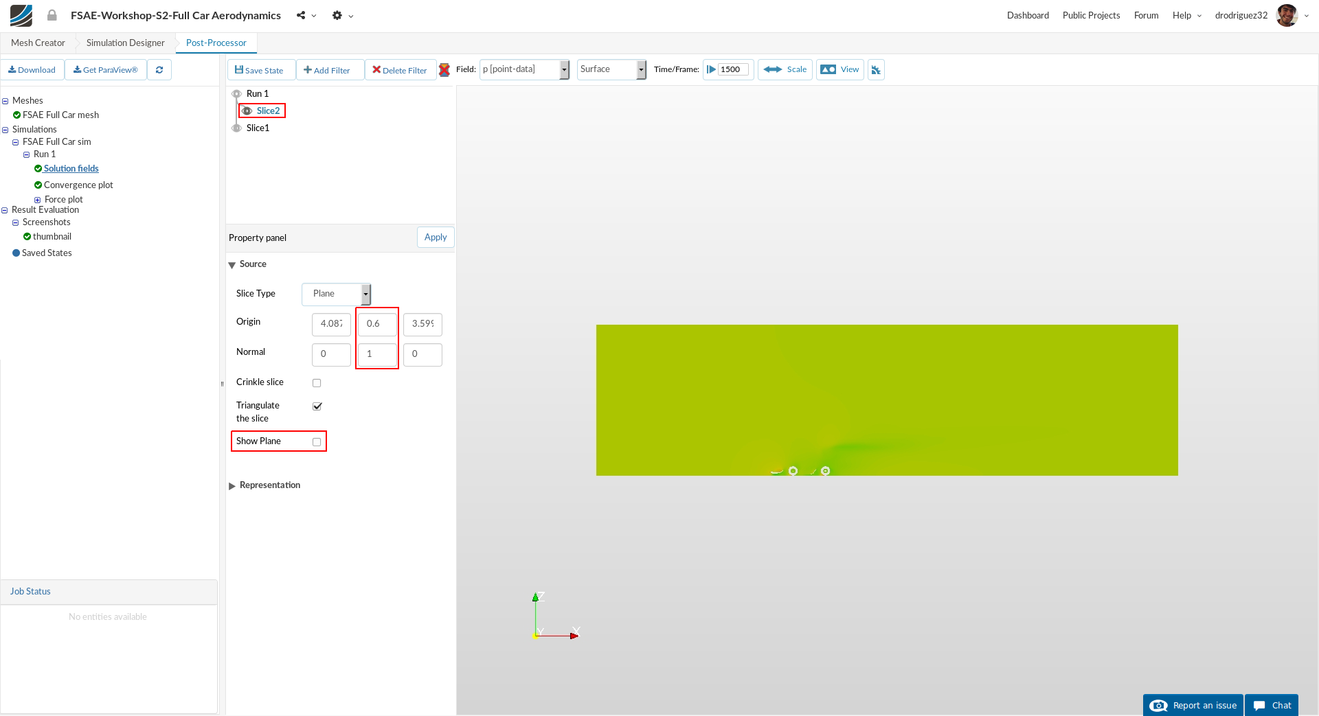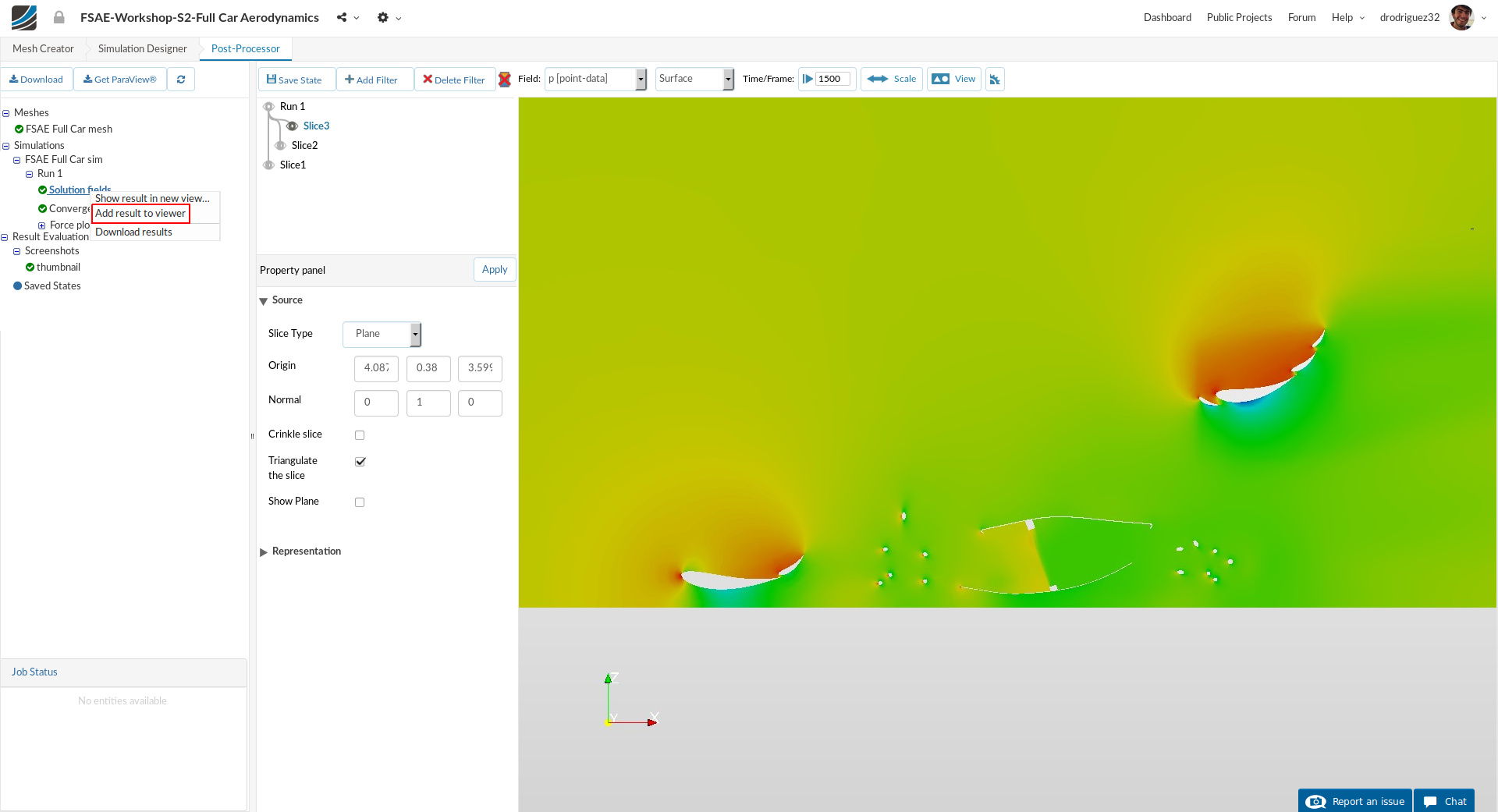 In order to see the pressure and velocity distribution on tires, we have to make another slice. This will be useful afterwards to compare the results between different configurations.