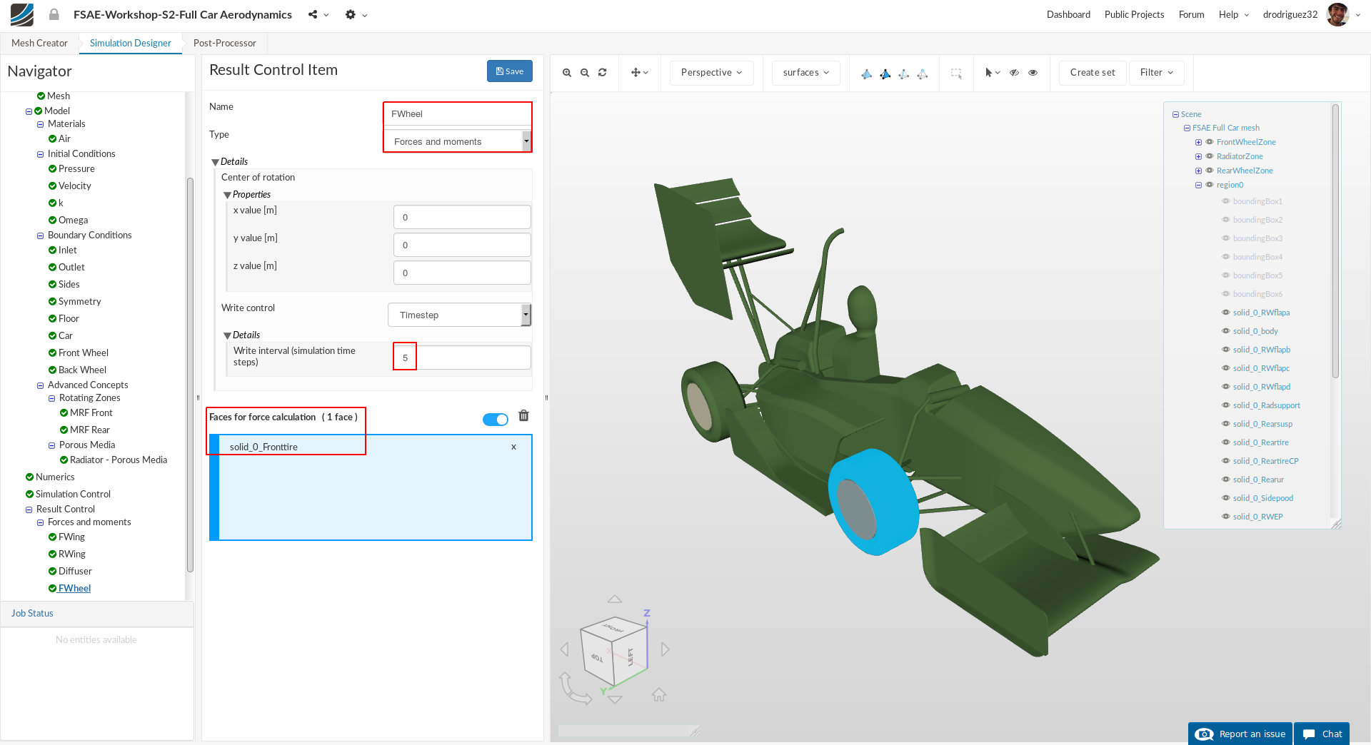 Follow the same procedure to create force and moment result control item for the front wheel and rename it to FWheel (optional).