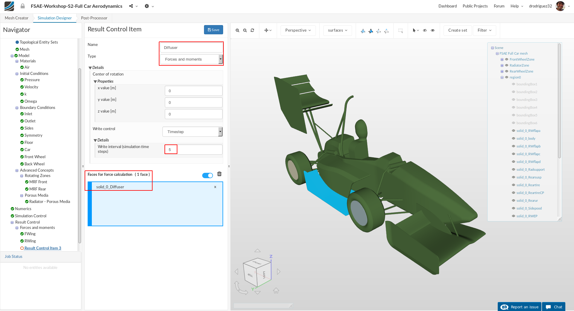 Follow the same procedure to create force and moment result control item for the diffuser. Rename it to Diffuser (optional).