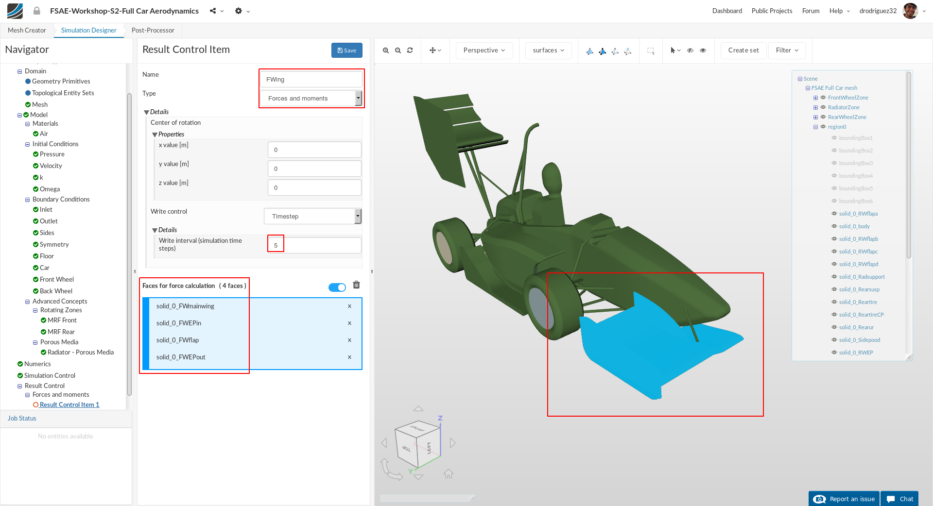 Select solid_0_FWmainwing, solid_0_FWEPin, solid_0_FWEPout and solid_0_FWflap. You should see them under Faces for force calculation.