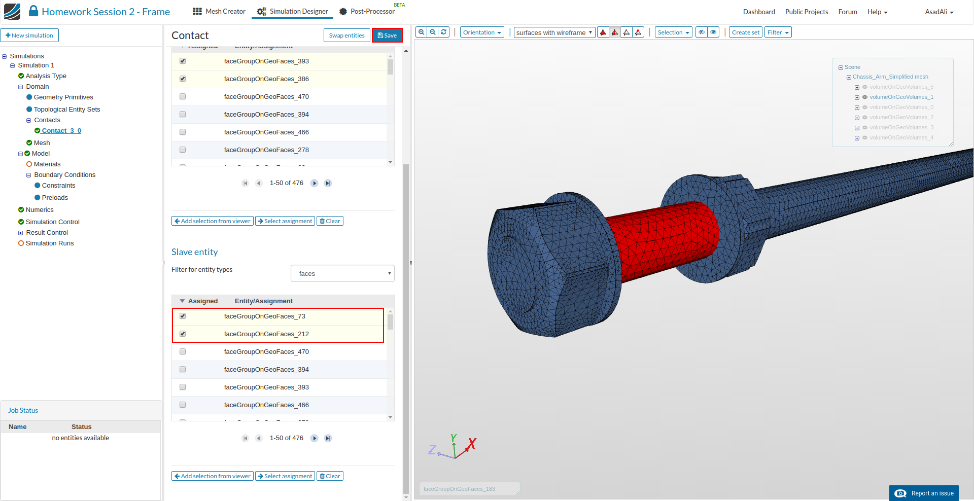 - Slave entity: faceGroupOnGeoFaces_73 (volumeOnGeoVolumes1), faceGroupOnGeoFaces_212 (volumeOnGeoVolumes1)