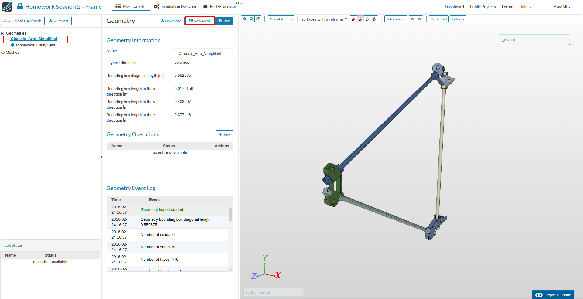 Now select the geometry and click on the New Mesh from the middle column to add start a new mesh setup for this geometry.