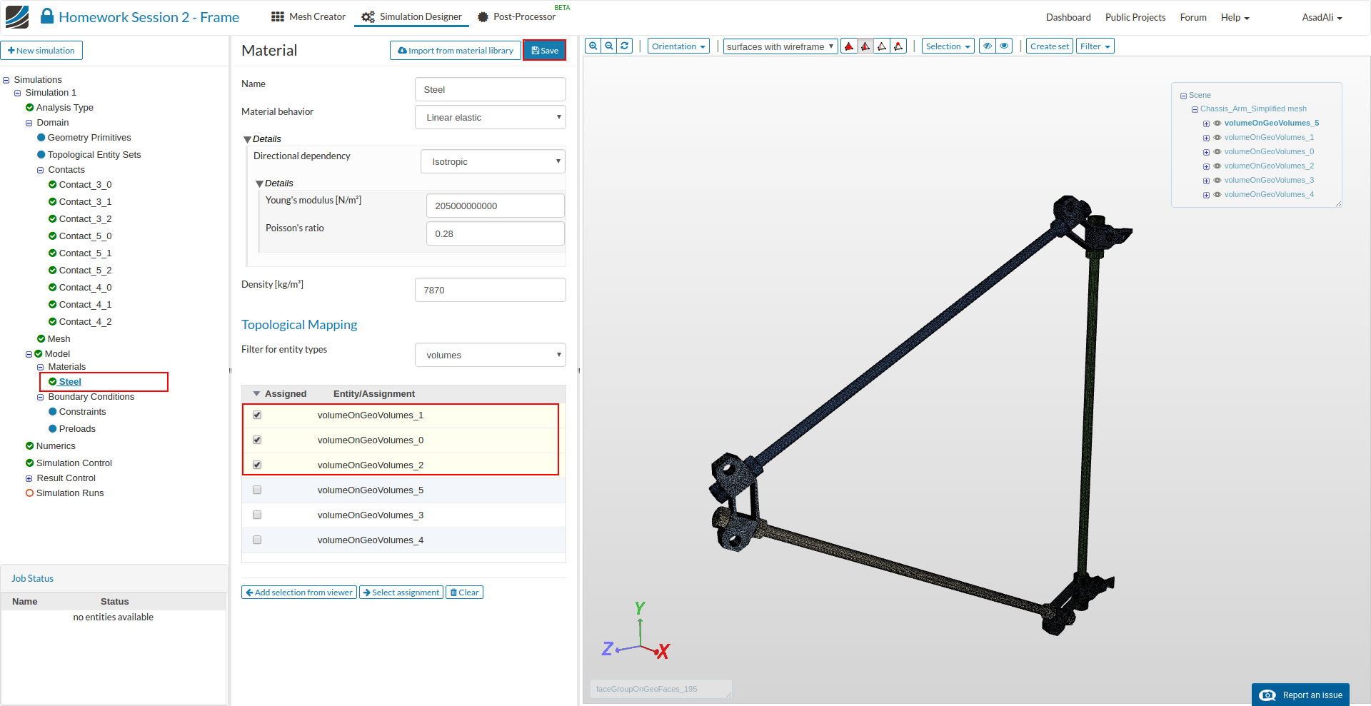 Now assign the material to the rods (volumeOnGeoVolumes_0, volumeOnGeoVolumes_1, volumeOnGeoVolumes_2).