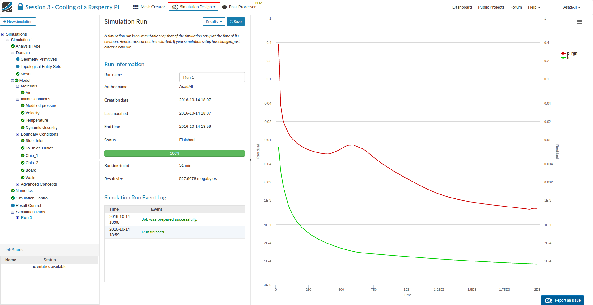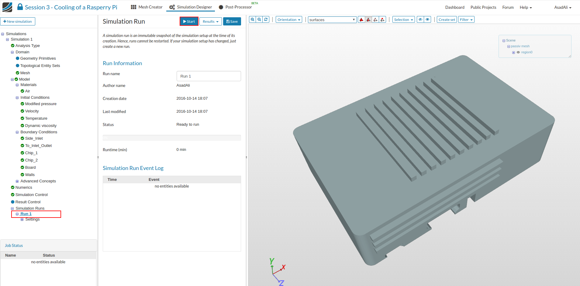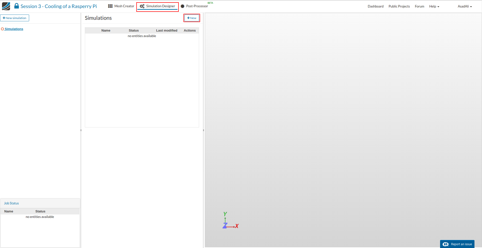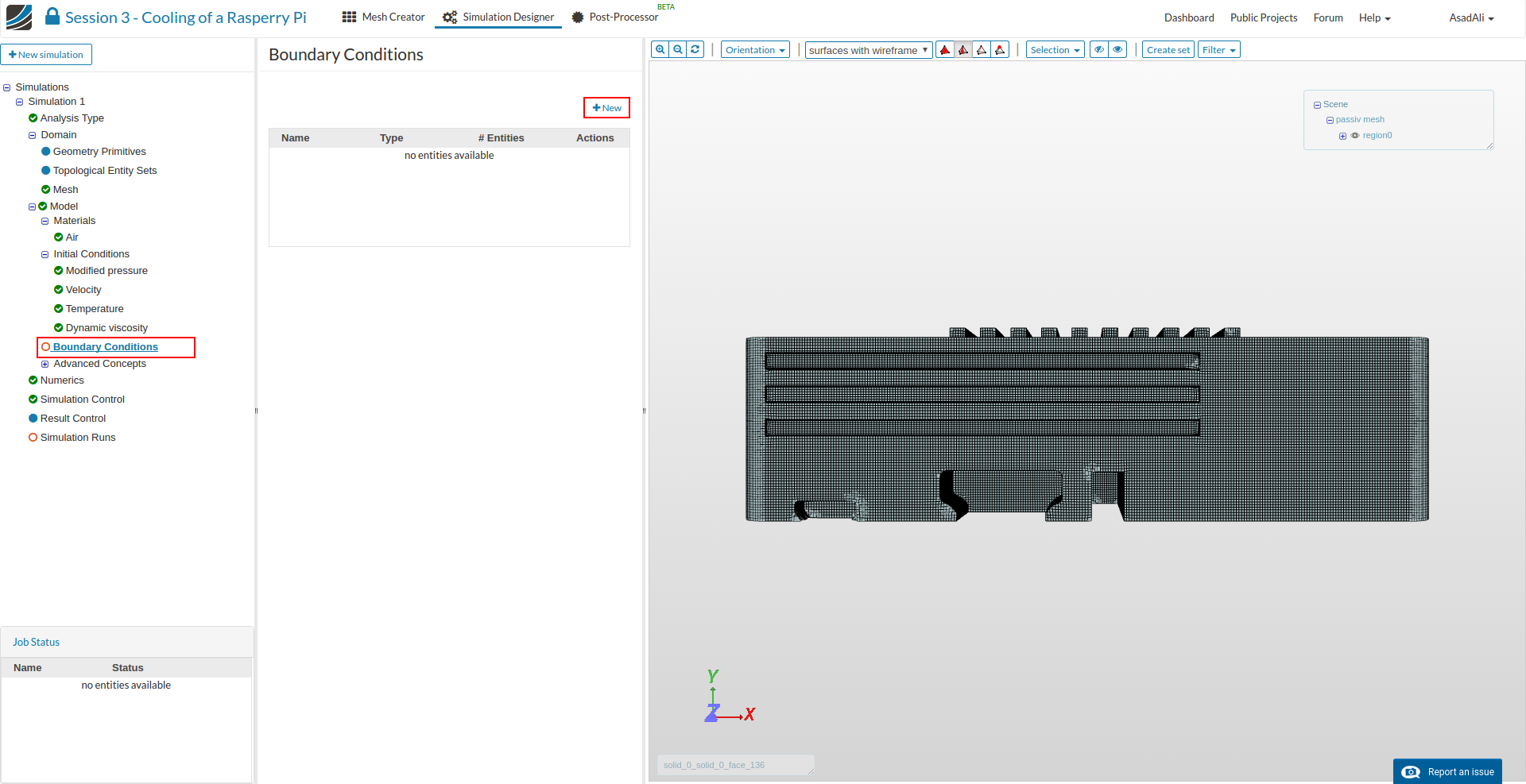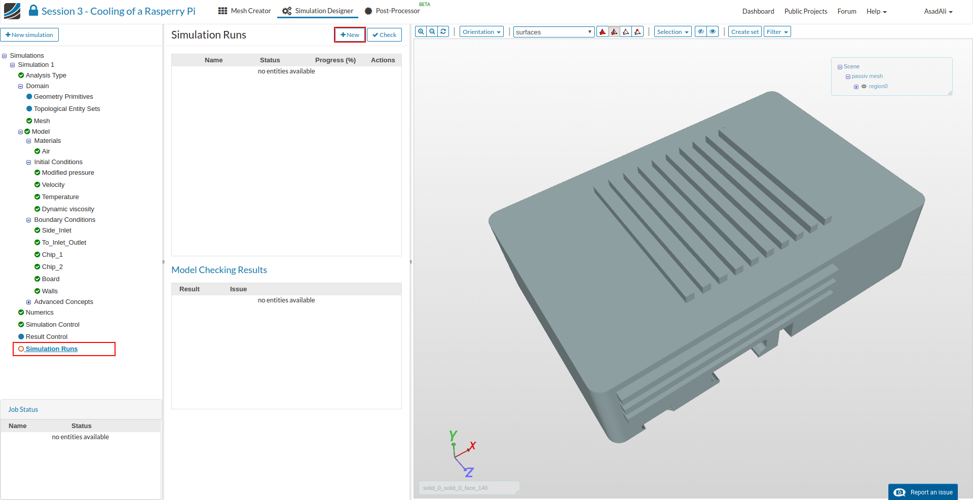 Once mesh is finished, move to the Simulation Designer tab and click on the New button to create a simulation run.