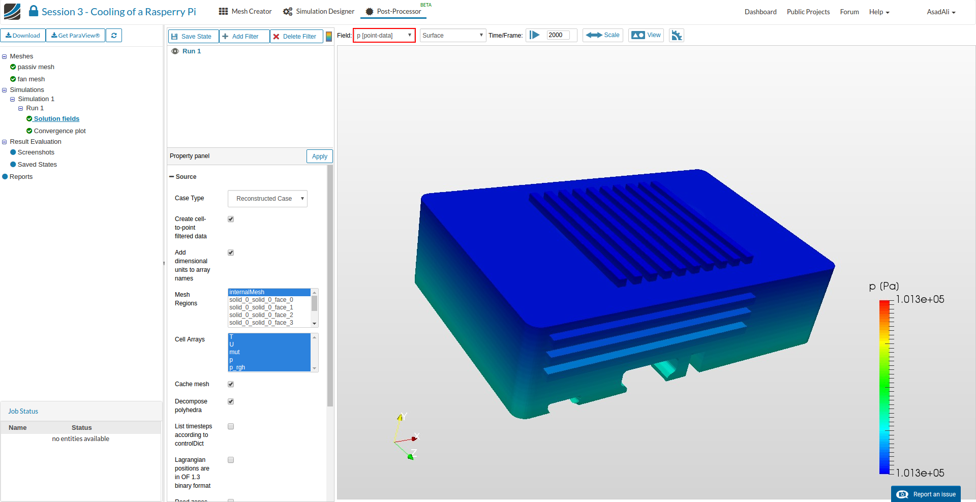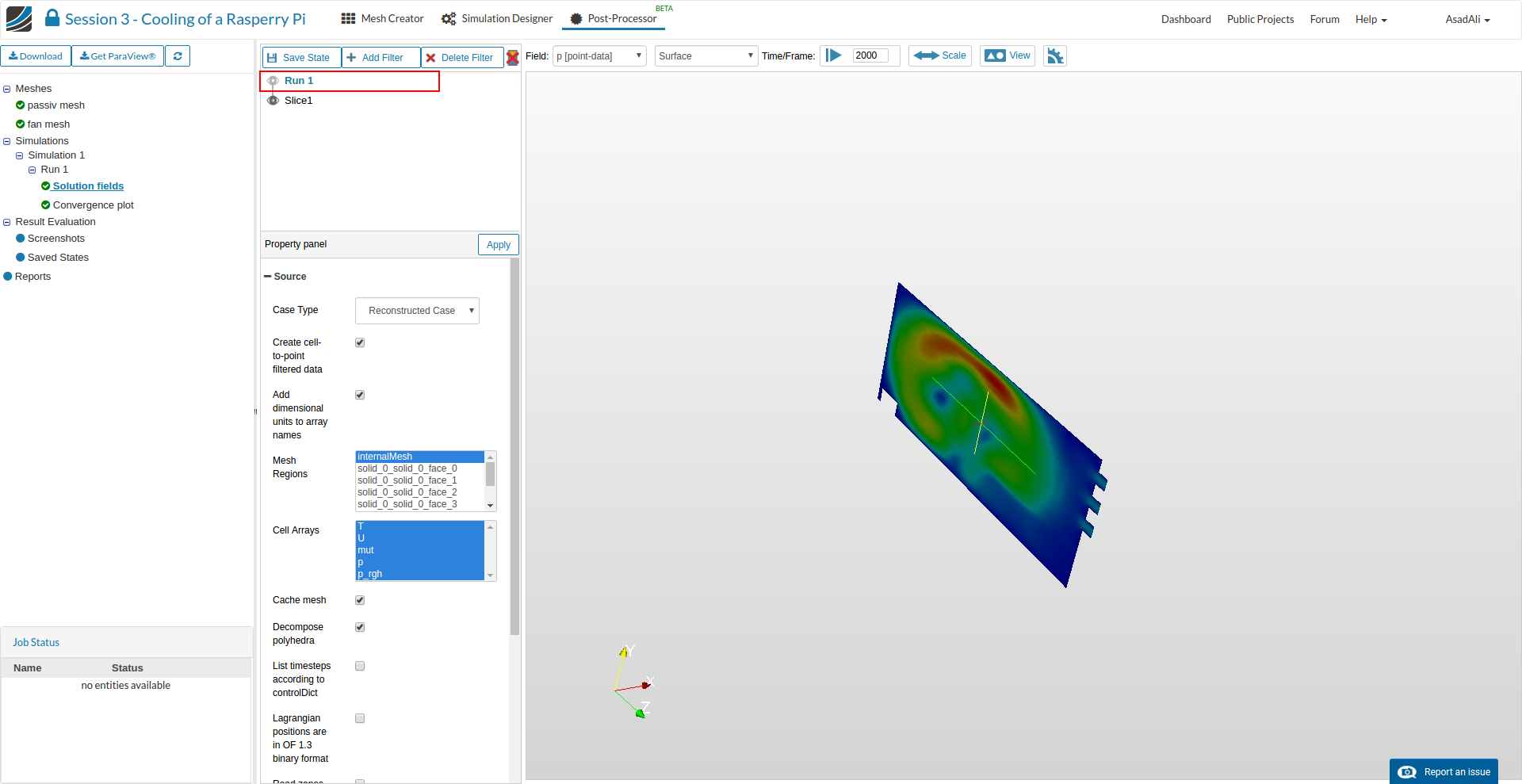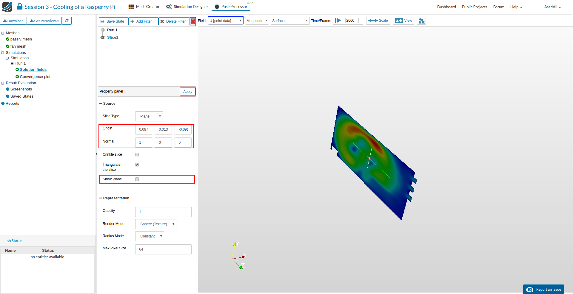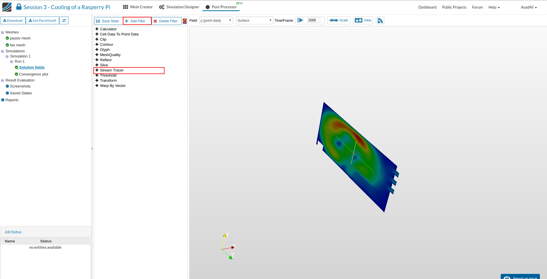 Once the simulation finishes, now to the Post-Processor tab And click on the Solution Field item in the project tree.