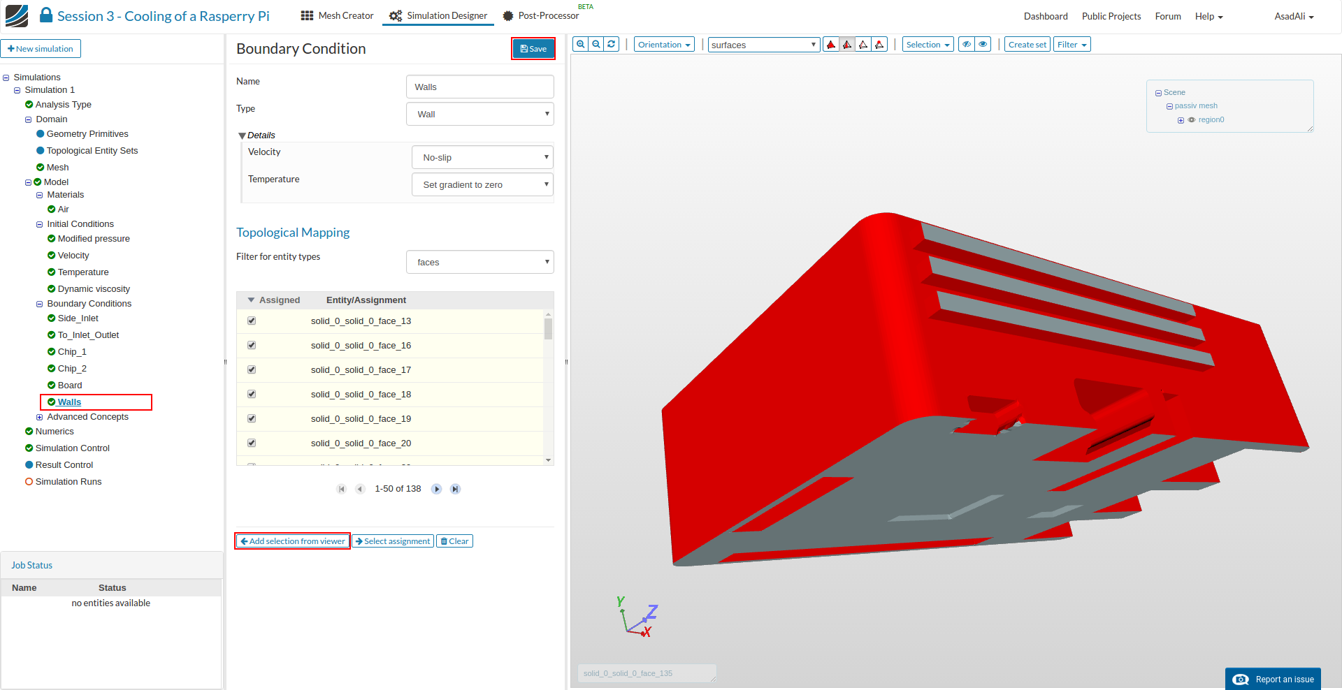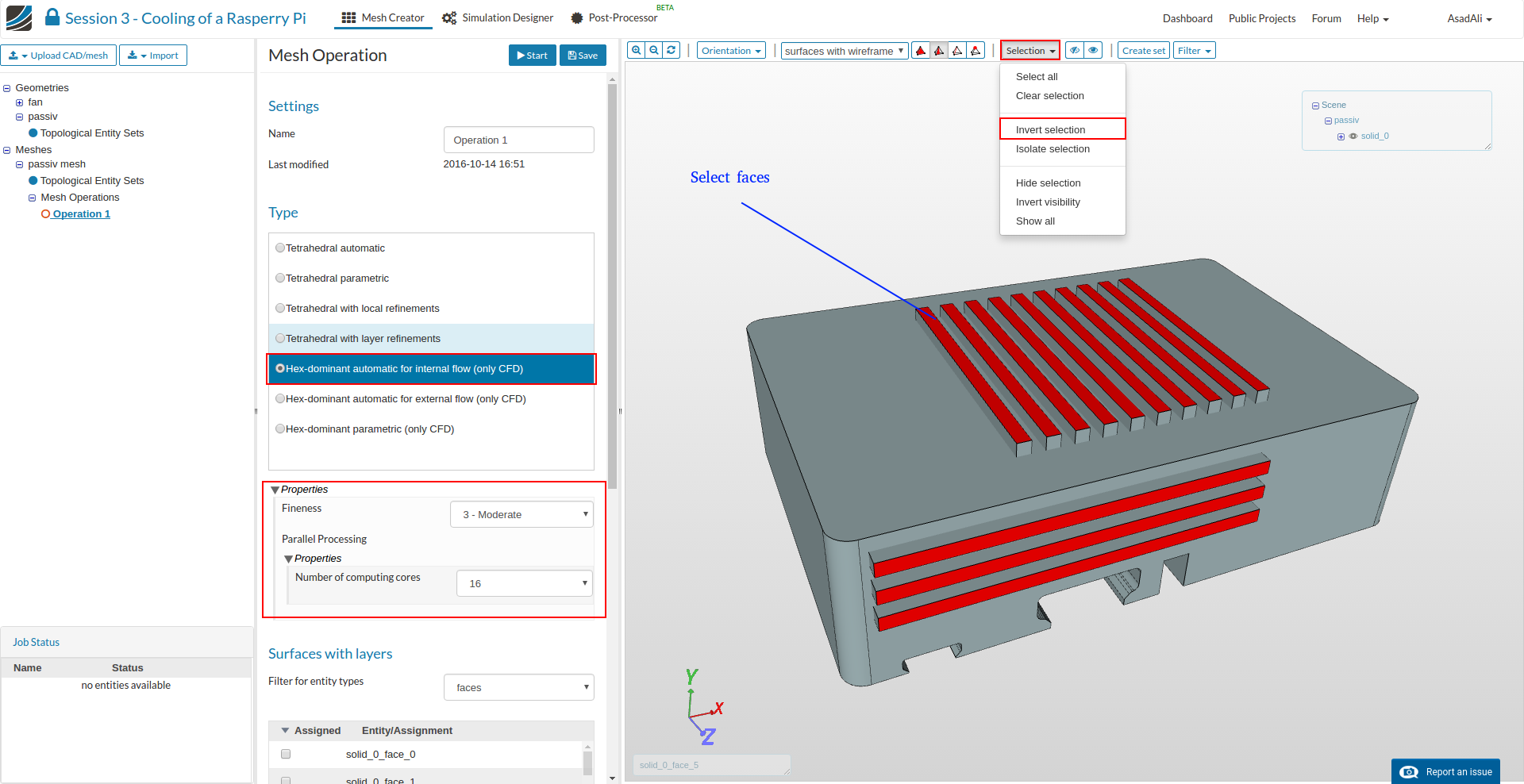Then just click on the Add selection from viewer button to add the faces you’ve selected before. Now click on the Start button to start meshing.