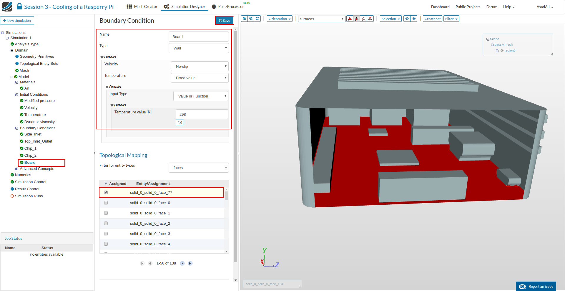 Next you have to specify which mesh you want to use for your simulation. Click on Domain item in the project tree and select passiv mesh from the menu which disappears in the middle column. Don’t forget to save your selection.