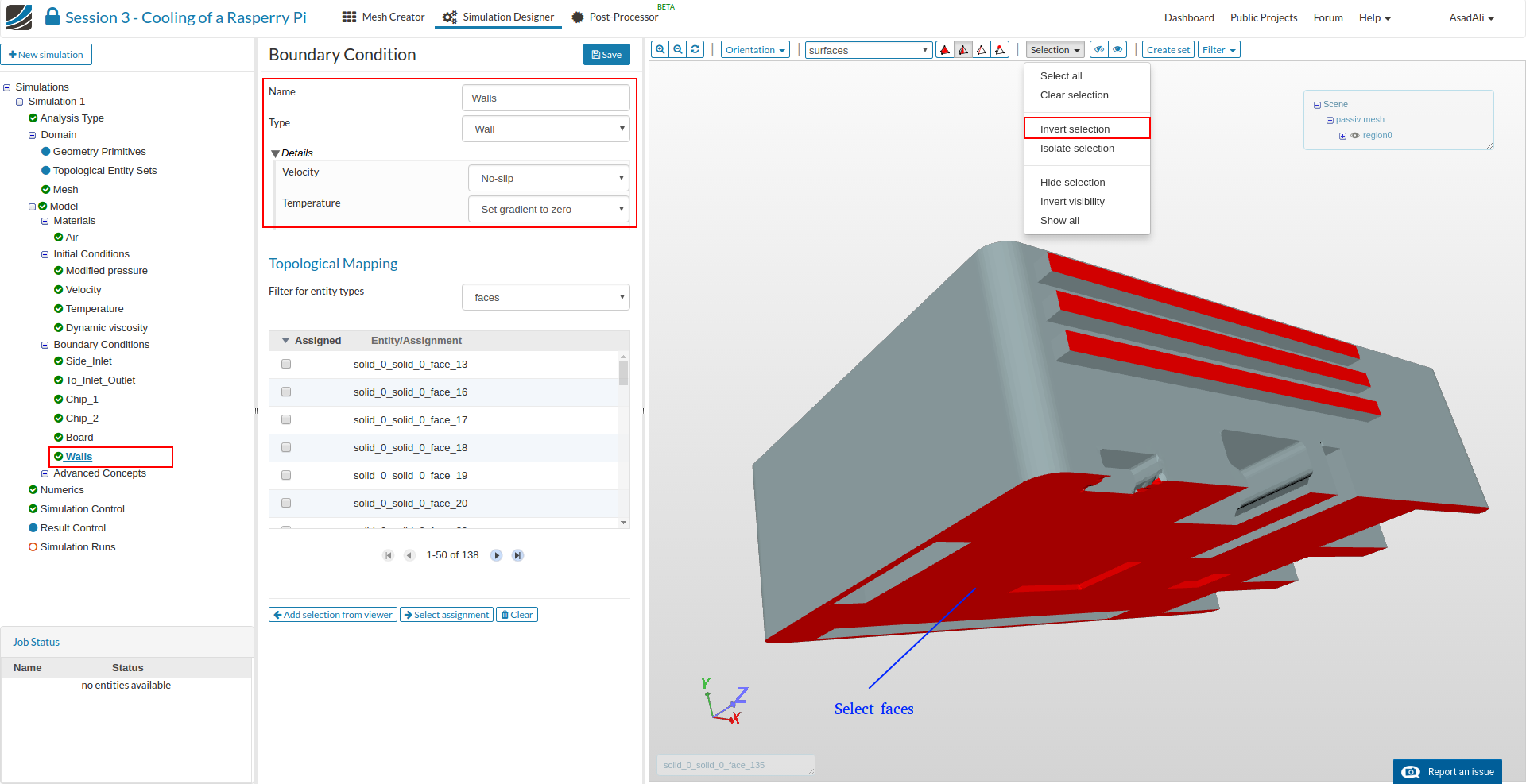 The temperature distribution of the other surfaces is not specified , since it is unknown. To simplify the selection of the related faces we recommend to use again the invert selection feature