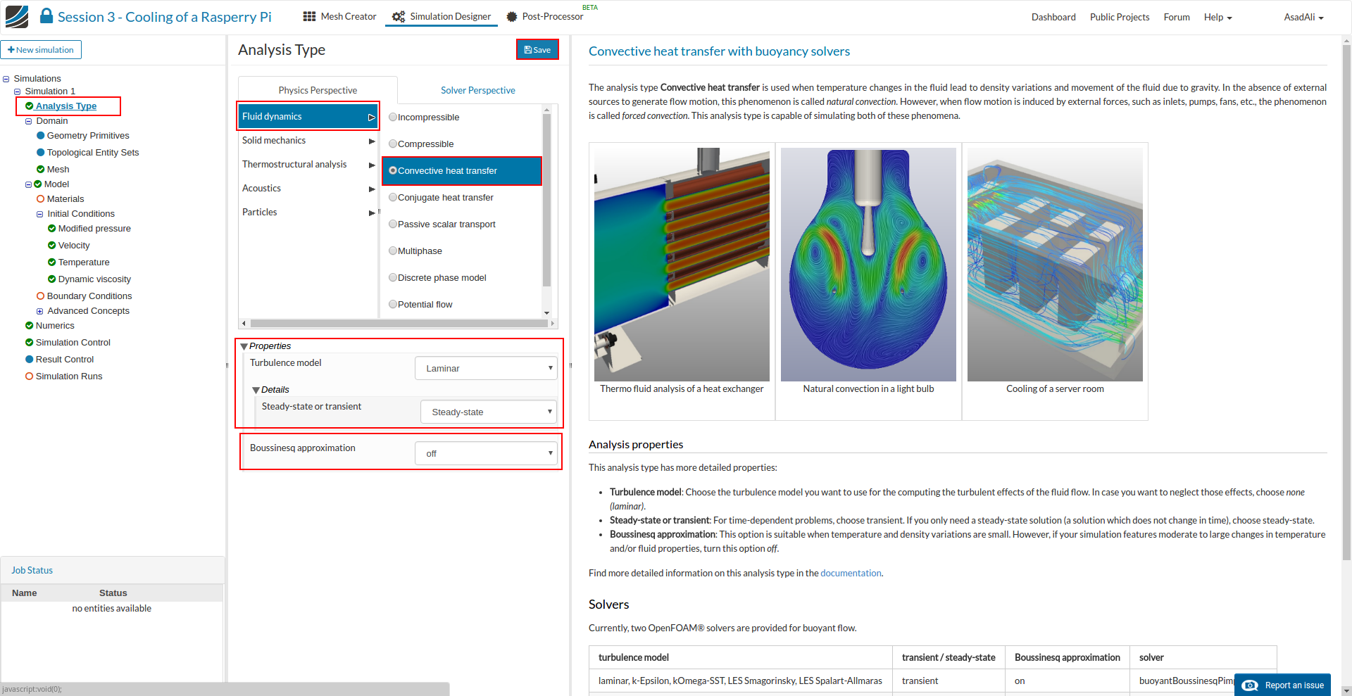 In our case we will run a Fluid dynamics simulation of Convective heat transfer.