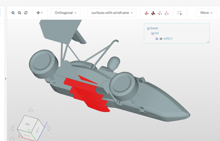 Here the front wing and the car are both at origin. I tried arranging this in 3D builder and using notepad editing. Theses methods did not work. Thus, if I get STP file, I can solve this in CATIA.