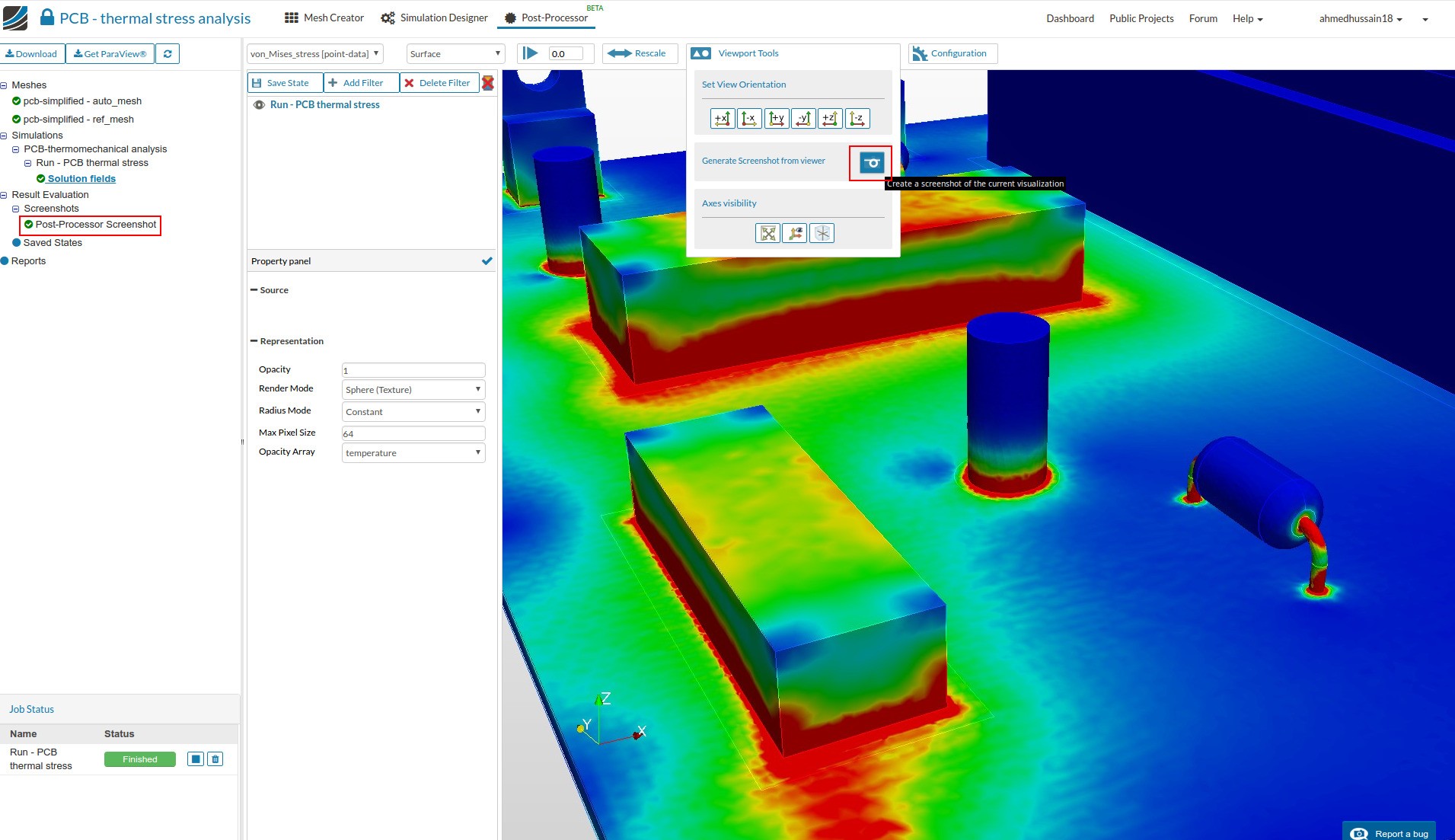 Finally to see the deformed PCB due to heated components, click on Add Filter in middle top of the mid panel and select WarpByVector