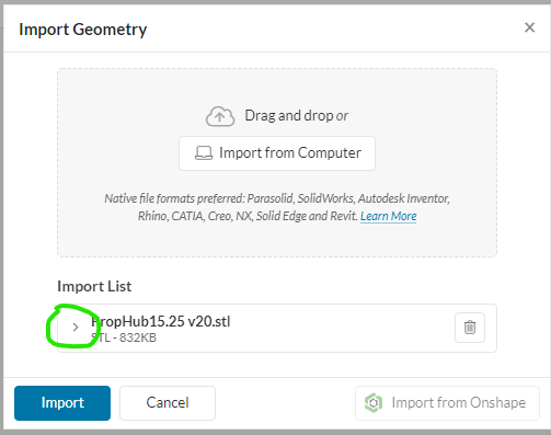 I was interested in this feature mentioned by @RicardoParis but it took me a little time to work out where this specific feature was located, to change the scale on an STL when importing, even after reading the referenced Simscale doc, but maybe thatâs just me