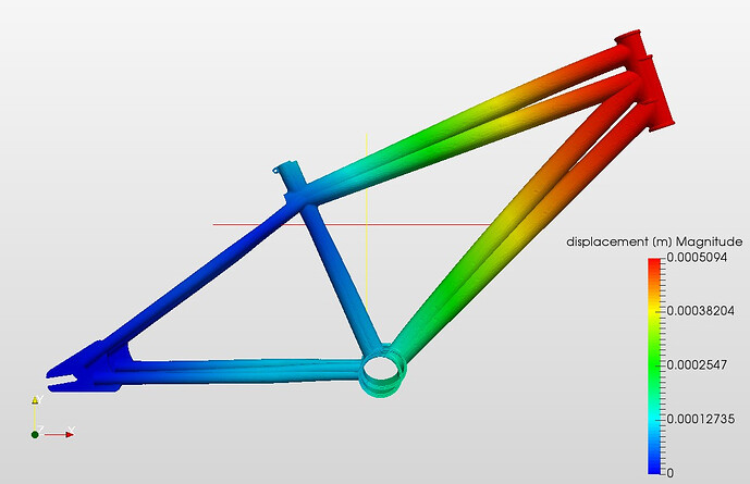 The results (von-misses stress and displacement) for the case ‘Standing person applying brakes leaning against the handlebars’ can be seen in the following pictures.
