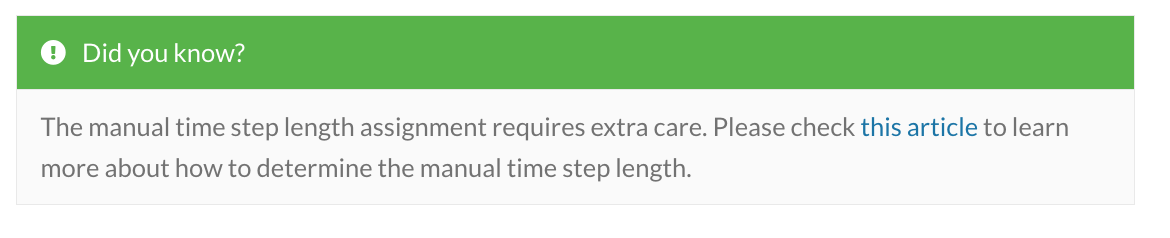 I found this post in the forum: How can time step and write options be made more intuitive? - #3 by rszoeke and voted yes, since I do think clearer instructions could simply appear on the input panel.