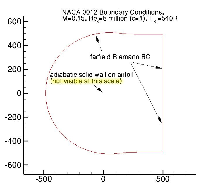 NASA made the domain so big that the airfoil cannot be seen at this zoom level. There’s another interesting page which mentions the effect of the farfield boundary. According to NASA the farfield boundary “can particularly influence drag and lift levels at high lift conditions”. Furthermore “with smaller farfield boundary extents such as 30 c, the boundary influence on the forces is greater (especially for drag)” (emphasis mine).