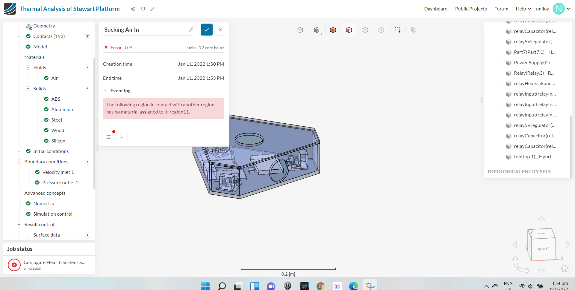 I am getting this error, "The following region in contact with another region has no material assigned to it: region11. ". I don’t know how to resolve it. There is no such region as region 11 in my CAD, closest thing would be flow region. How do I find region 11 and how to resolve this issue?