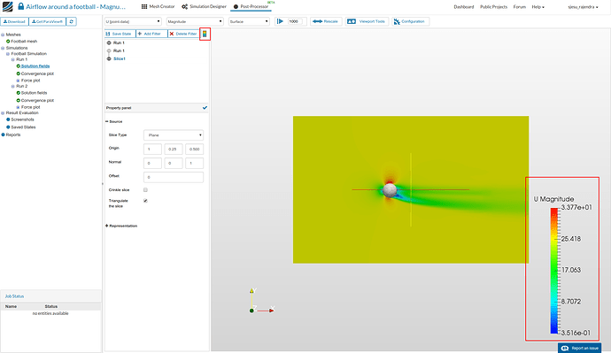- Click on Slice to insert a domain slice to the viewer. The internal mesh is automatically hidden when the slice is added.