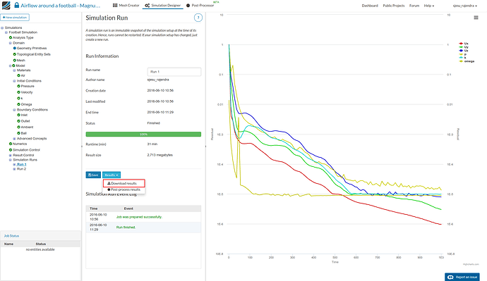 - The results of the simulation can be obtained locally by selecting the specific run on the Simulation Designer tab and downloading the results in a compressed format.