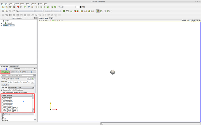 - Select the ball faces for mesh regions (number 3) and apply these settings to the viewer.