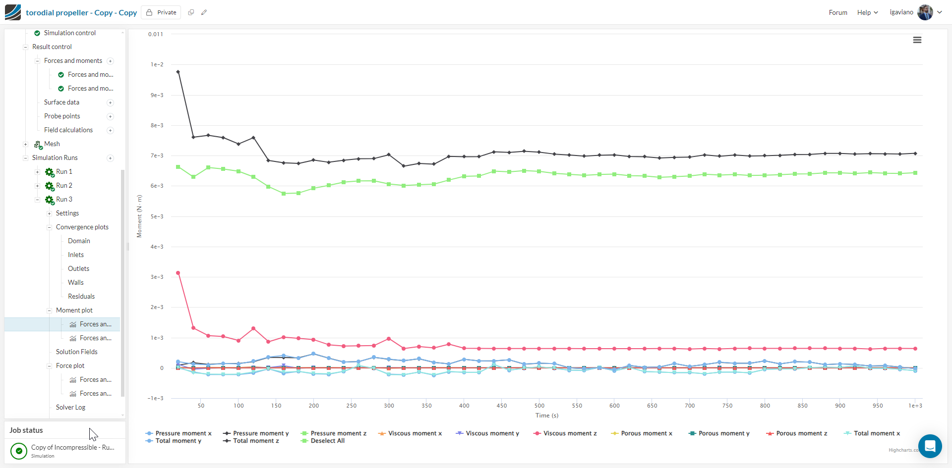 hello there, so i am trying to calculate the efficiencies of my toroidal propeller , but for some reason my generated thrust force is negative while the moment is positive, I’ve tried changing the directions etc… but then my moments are negative and the thrust is positive , I’ve even changed the design a little bit but still getting the same results