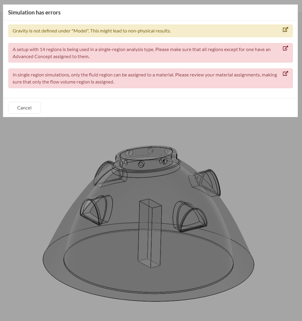 The rule number 1 is: under normal circumstances, a single volume is allowed for the simulation. Failing to satisfy this requirement will result in a multi-region error. From the tutorial that I linked: