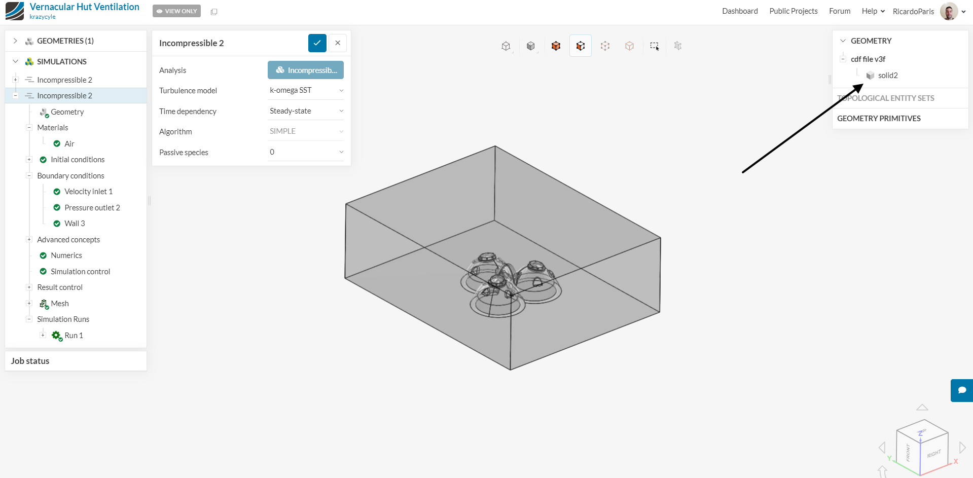 I understand that, but this time I have a modeled person in my hut and I want to test the internal heat dissipation from them and how it ventilates out of the hut. From the tutorial I am watching, there are multiple solids that are used to set different properties to. If I do what I did last time, I will only have one solid and cannot set different properties to differing solids.