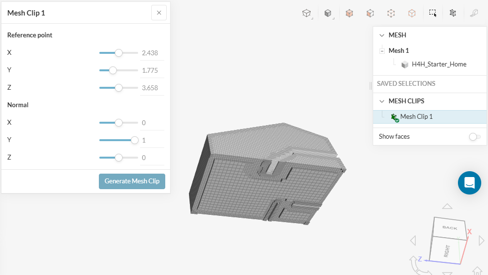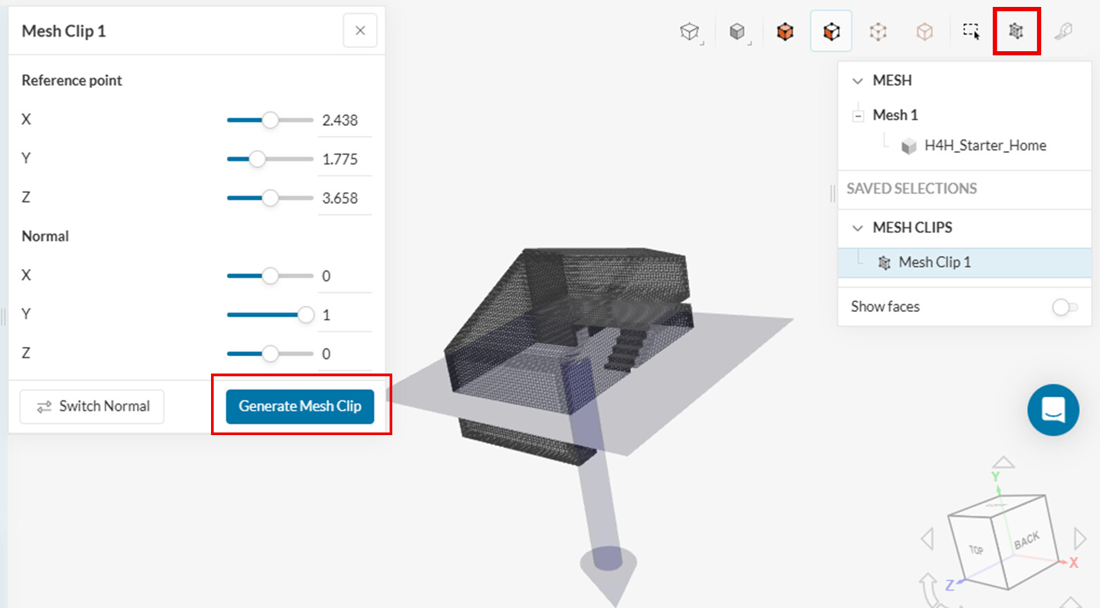 Generate the mesh. After mesh generation, preview the mesh. You can view the inside of the mesh using “mesh clip” feature.