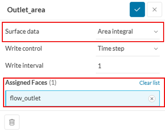Choose Surface data as “Area integral” and assign an outlet face (flow_outlet in our case).