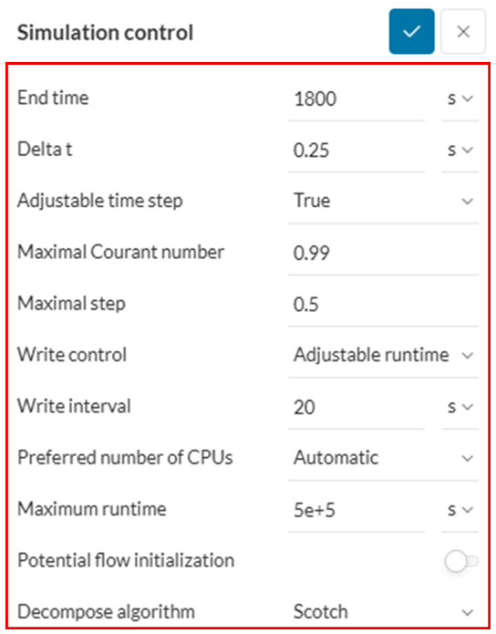 In one case, we are simulating the flow at +45°, while in another case we are simulating the flow at -45°. We are looking for 30 minutes of airflow inside the home, which corresponds to 1800 seconds. We are using adjustable timestep settings with maximum courant number limit of 0.99.