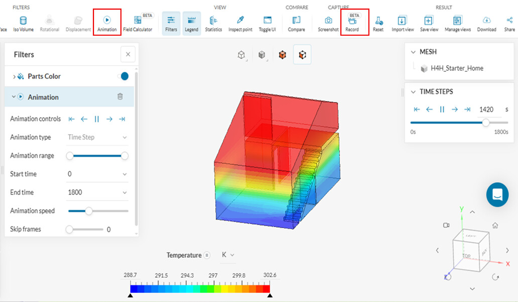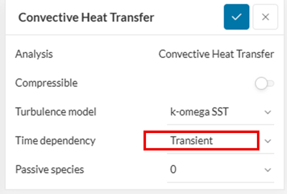 We are using the Convective Heat Transfer study with Time dependency as “Transient” because we are interested in the evolution of temperature (home cooling) over 30 minutes (1800 seconds) duration.