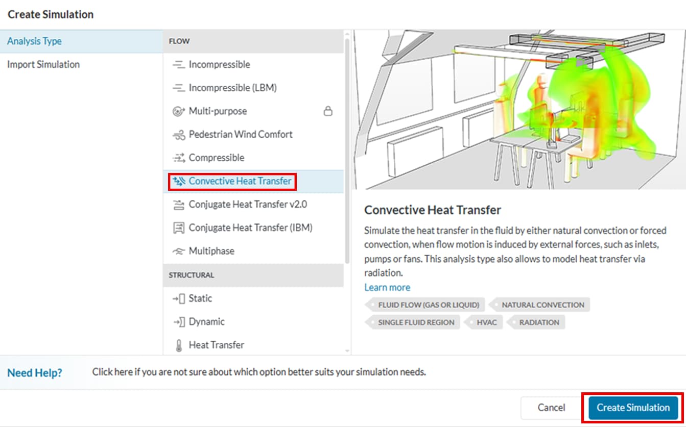 Choose “Convective Heat Transfer”. We are interested in the convective heat transfer study inside the home as the cold air is being supplied.