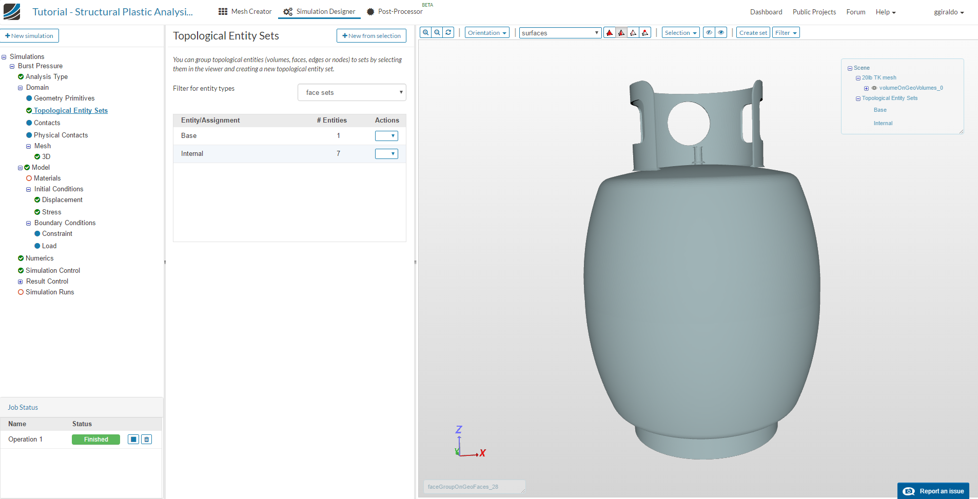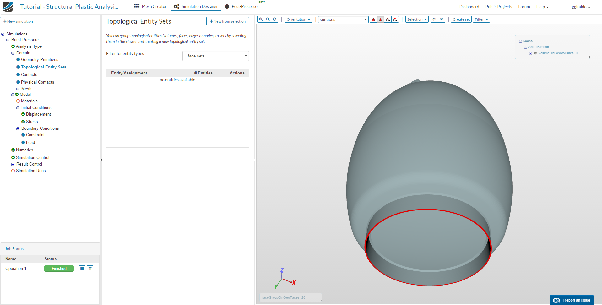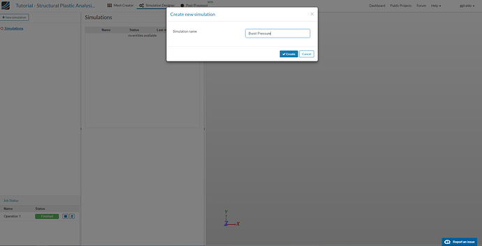 Give the simulation a name in the pop-up window, e.g.: “Burst Pressure” and click Create.
